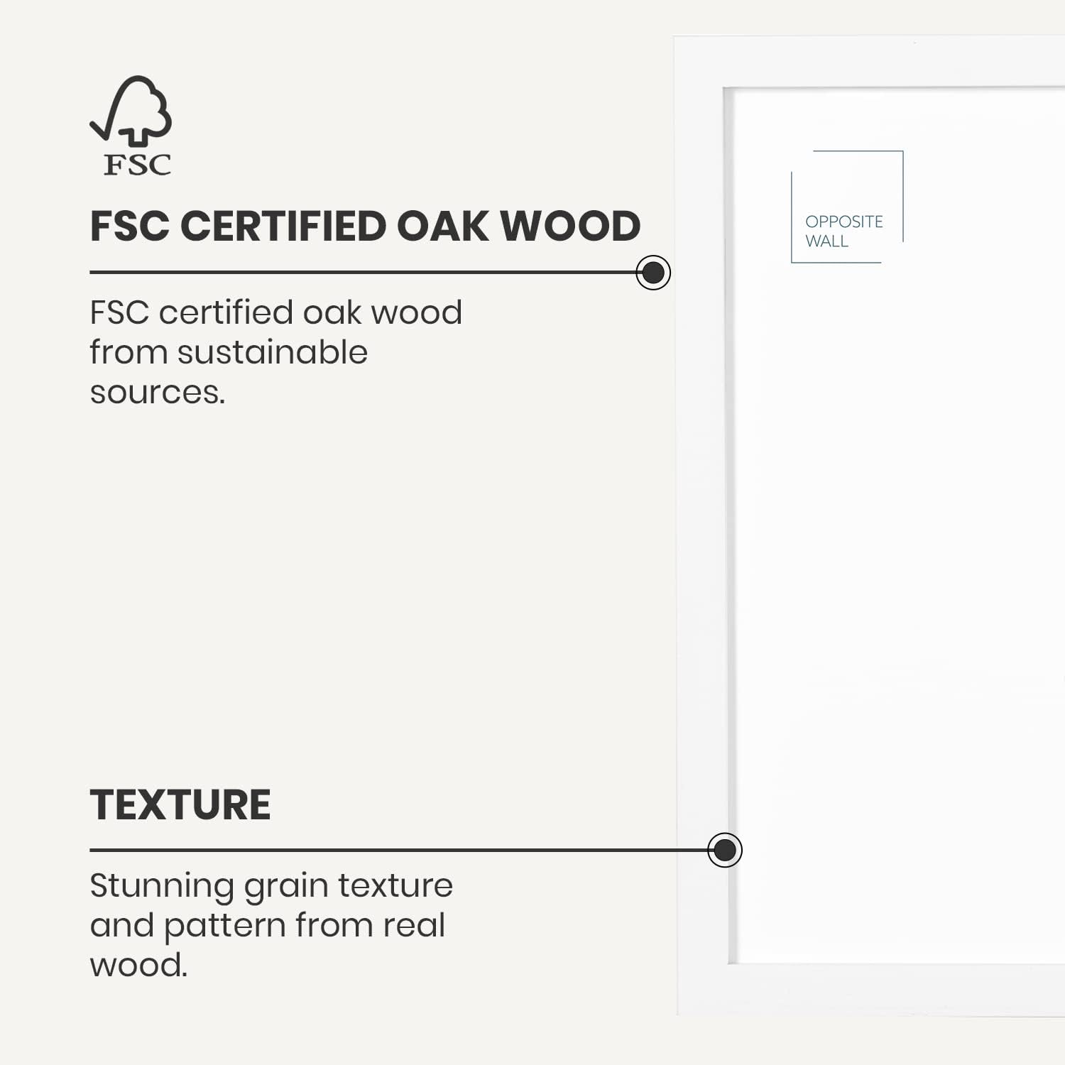 - HIGH-QUALITY SOLID OAK WOOD PICTURE FRAME - Designed in Montreal, Canada, this FSC-certified frame exudes quality. Sturdy construction and visible wood grains embrace the natural variation in authentic color. As a natural wood product, the oak color may slightly vary from the photo.