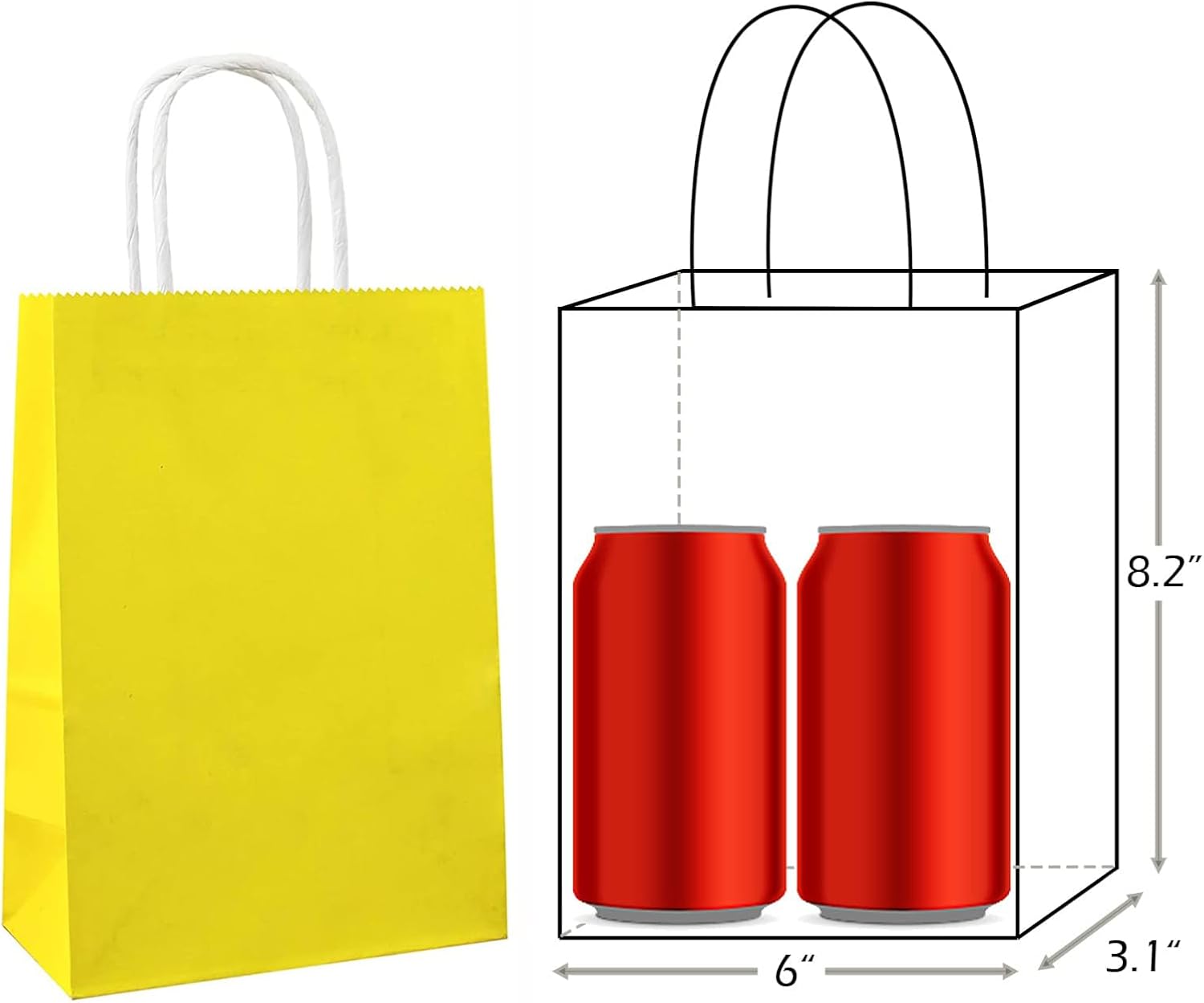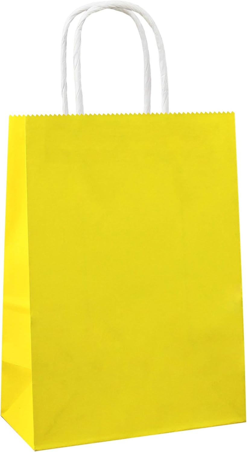 - Package: 25 PCS small yellow gift bags with handles, each bag measuring 8.2 x 6 x 3.1 inch