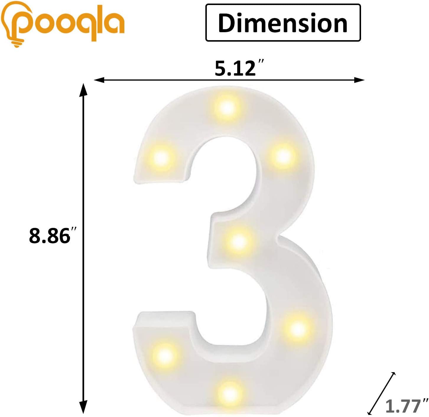 Decorative Led Light Up Number Letters, White Plastic Marquee Number Lights Sign Party Wedding Decor Battery Operated Number (3)