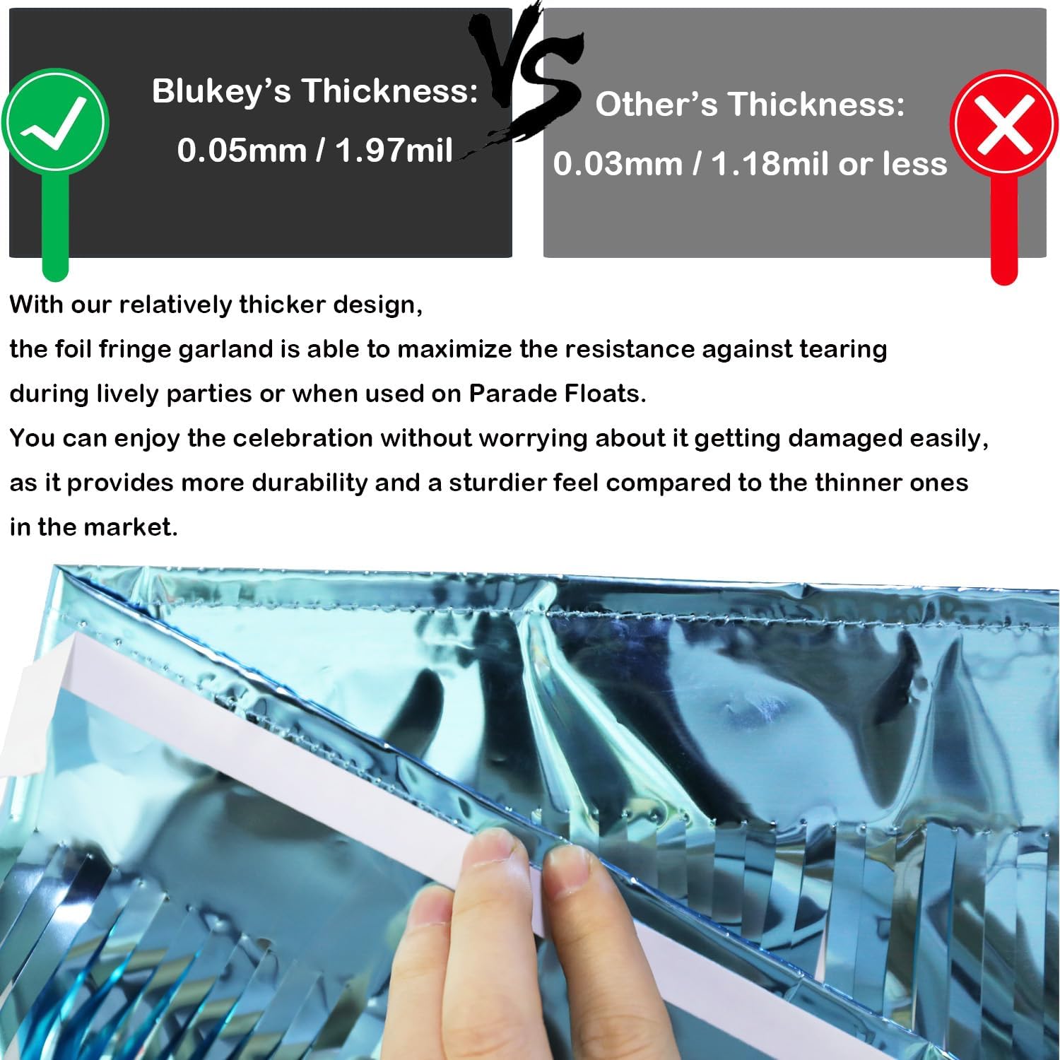 Thick 10 Feet by 15 Inch Turquoise Foil Fringe Garland - Pack of 3 | Shiny Metallic Tinsel Banner for Parade Floats, Bridal Shower, Wedding, Birthday, Christmas | Wall Hanging Drapes (3)
