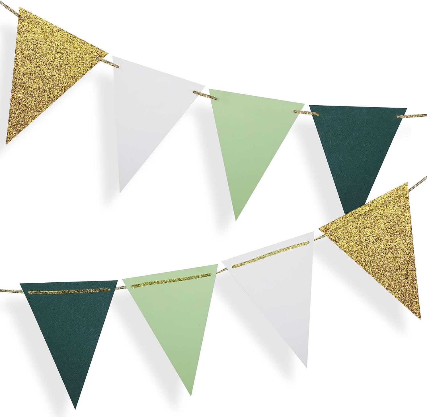 - Package comes 1 set 10-feet long white+grass green+Forest Green+Glitter Gold triangle paper garland, and each flag is super large