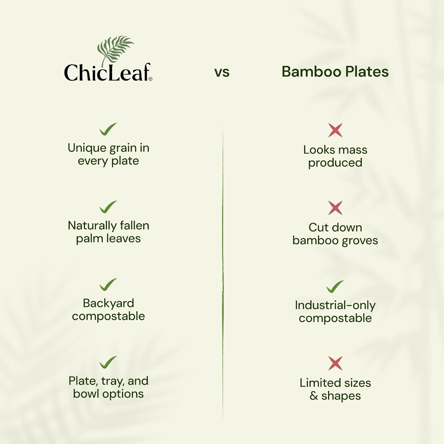 - Chic Leaf Elegance: Discover Chic Leaf's palm leaf plates, an eco-friendly alternative that elevates any dining occasion. These biodegradable plates offer a sophisticated touch, perfect for transforming your parties into memorable events