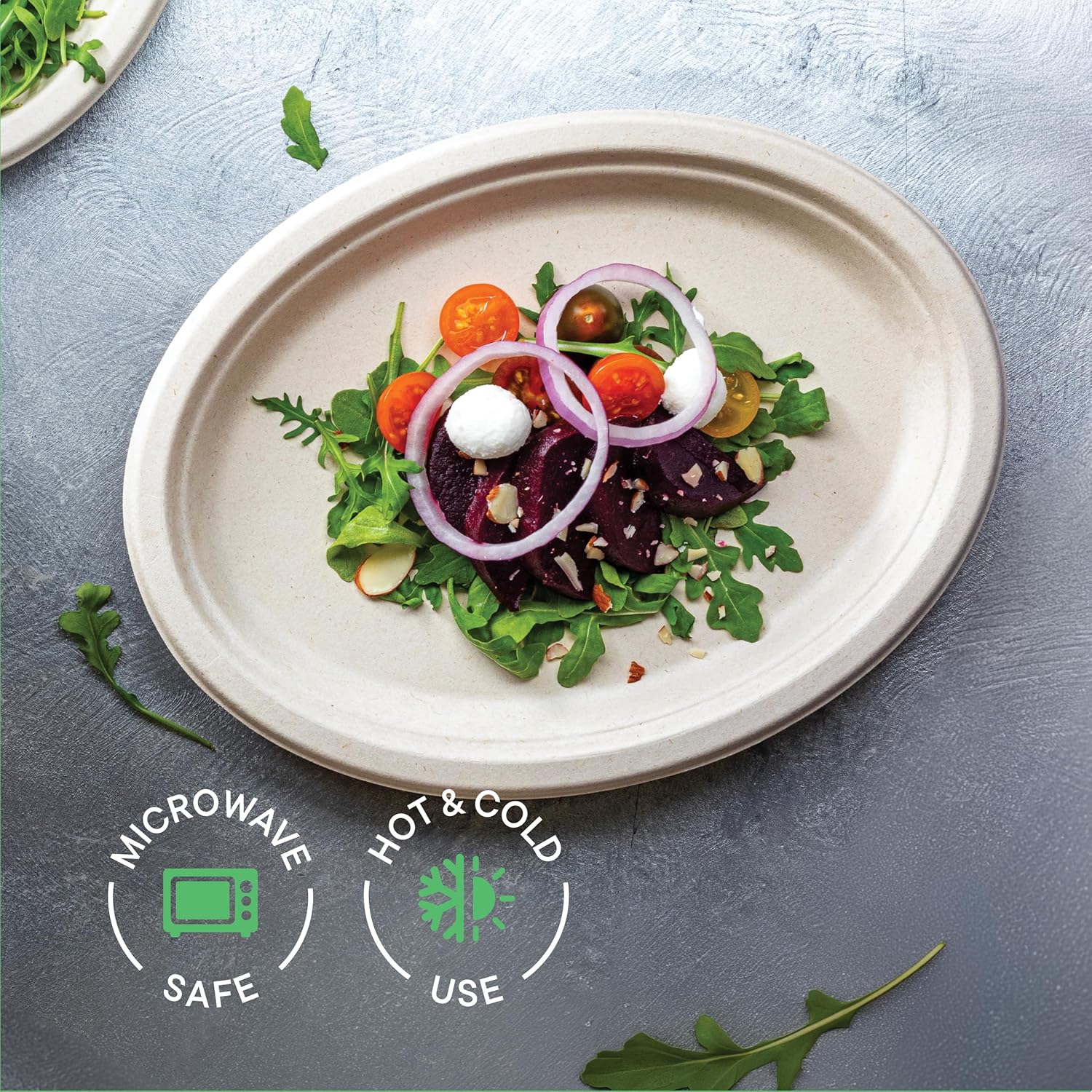 - HEAVY-DUTY AND MICROWAVABLE: Don't underestimate these nature warriors. Our plates are four times stronger than standard disposable paper or plastic ones. They're able to resist oil, sogginess, bending, and knife cuts. Plus, they're safe to use in the microwave, and can be used for hot or cold.