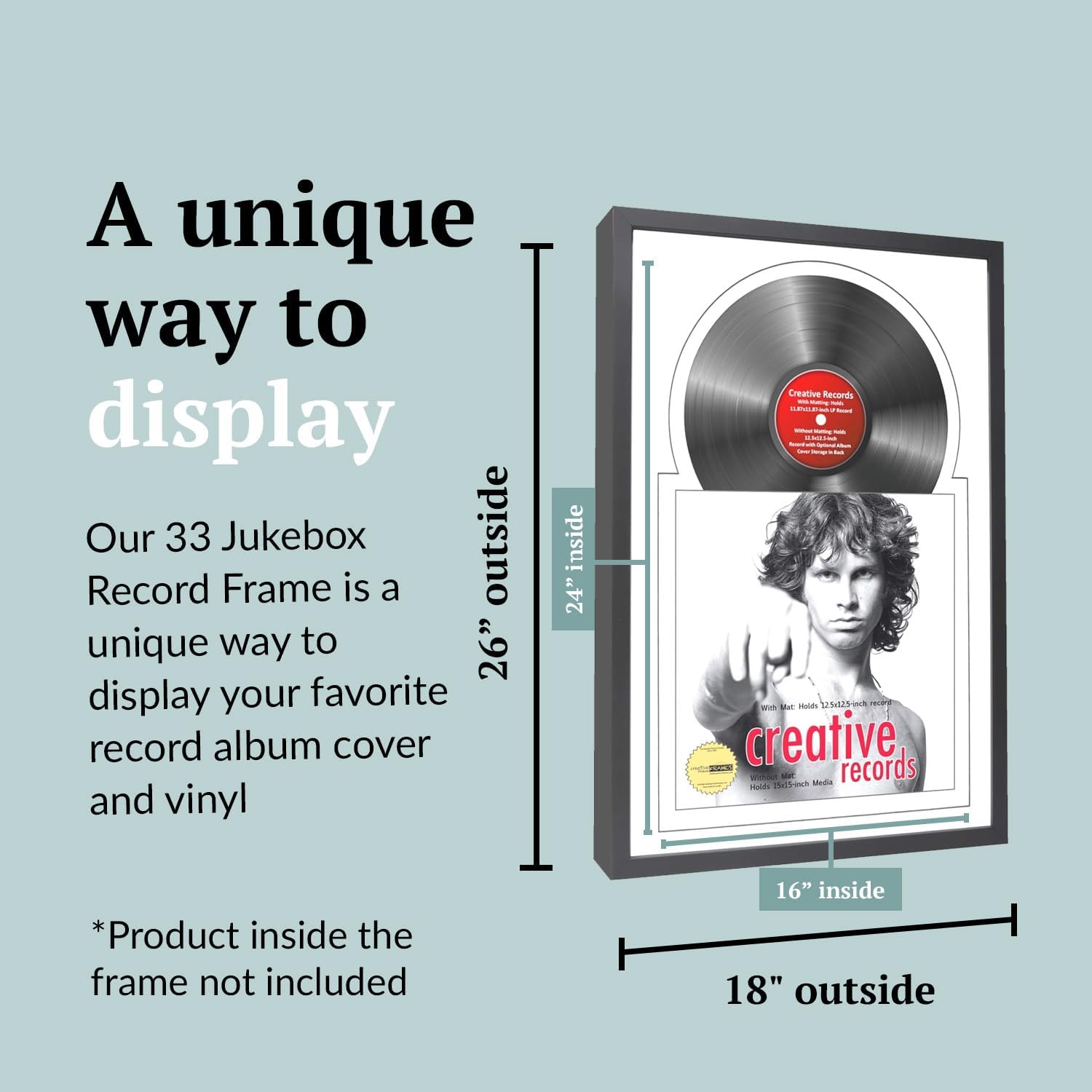 - Perfect Fit: With measurements of 16 x 24 inches inside and 18 x 26 inches outside, our LP album frame is designed to accommodate 11.87 x 11.87-inch record and 12.5 x 12.5-inch album cover, ensuring a perfect fit for your vinyl record wall display