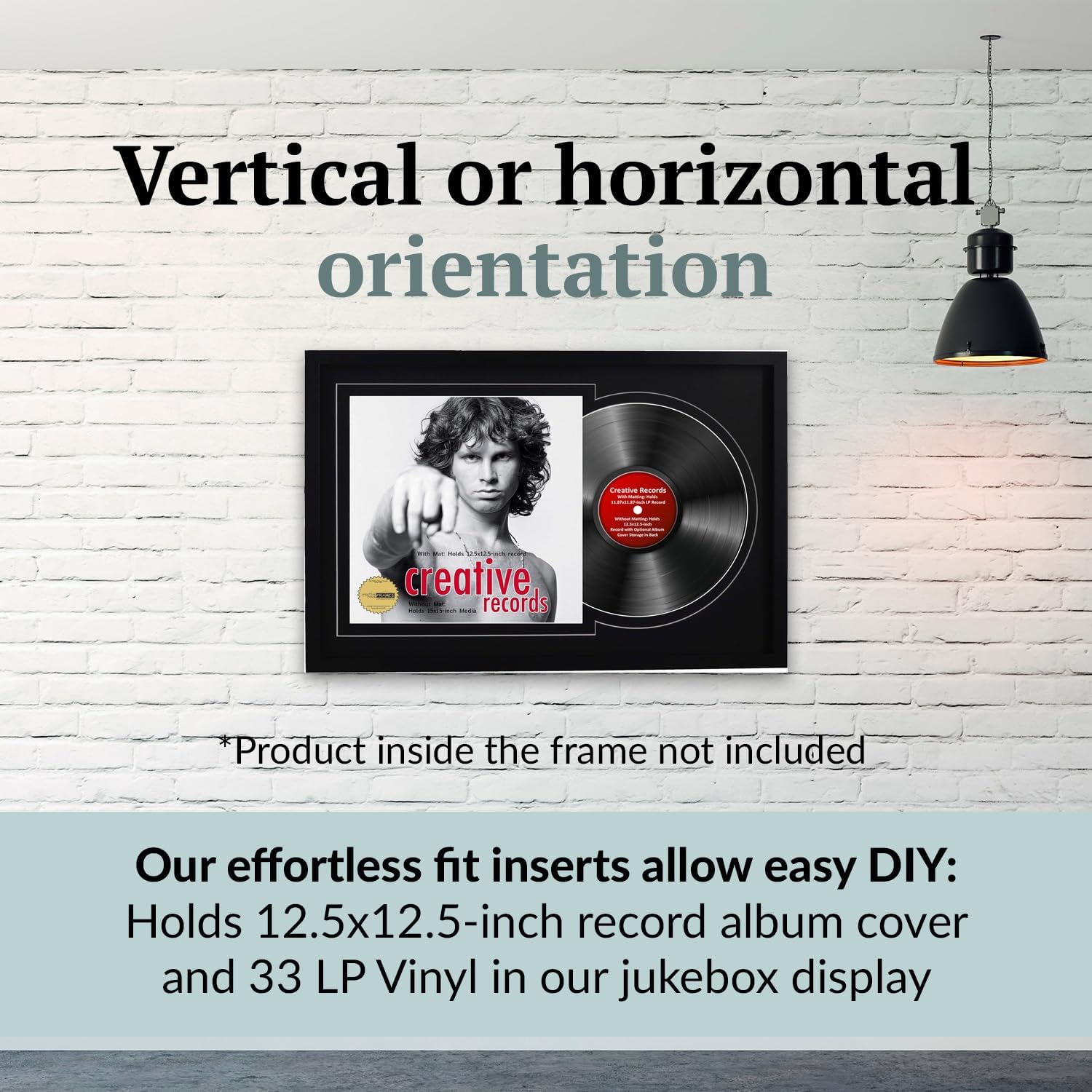 - Your Music In Full Display: Showcase your favorite vinyl record album covers and 33 LP Vinyl in a stunning jukebox-style 24x16 frame with double black matting, allowing your music collection to take center stage in your wall art dรฉcor