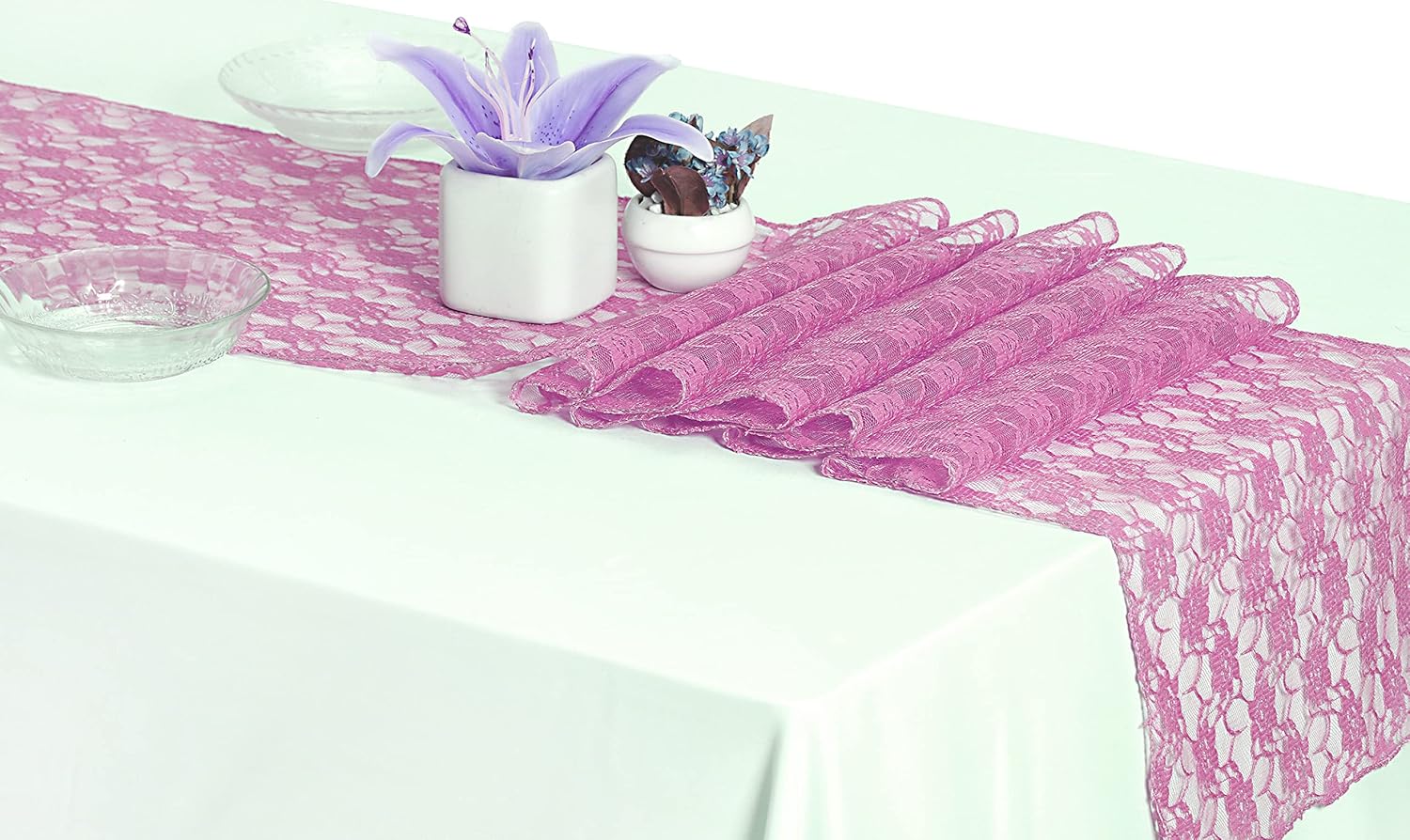MDS Pack of 15 Wedding 12 x 108 inches Lace Table Runner for Wedding, Decorations for Birthday Parties, Banquets, Graduations, Engagements, and Runners fit Rectangle, Round Table- Dusty Pink