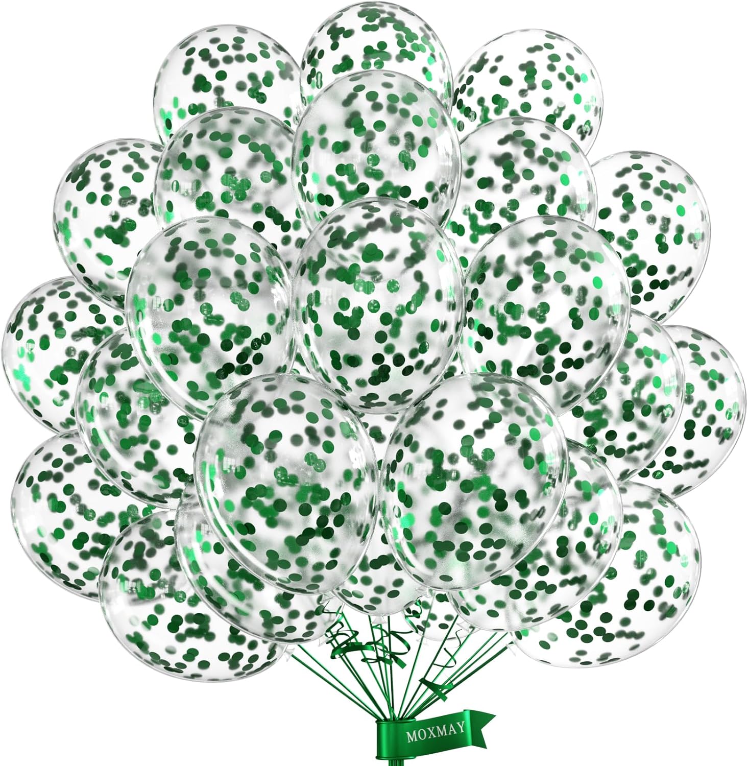 Green Confetti Balloons 12 inch, 50 Pcs Clear Balloon with Green Confetti for Graduation Birthday Wedding Baby Shower Christmas Party Decorations