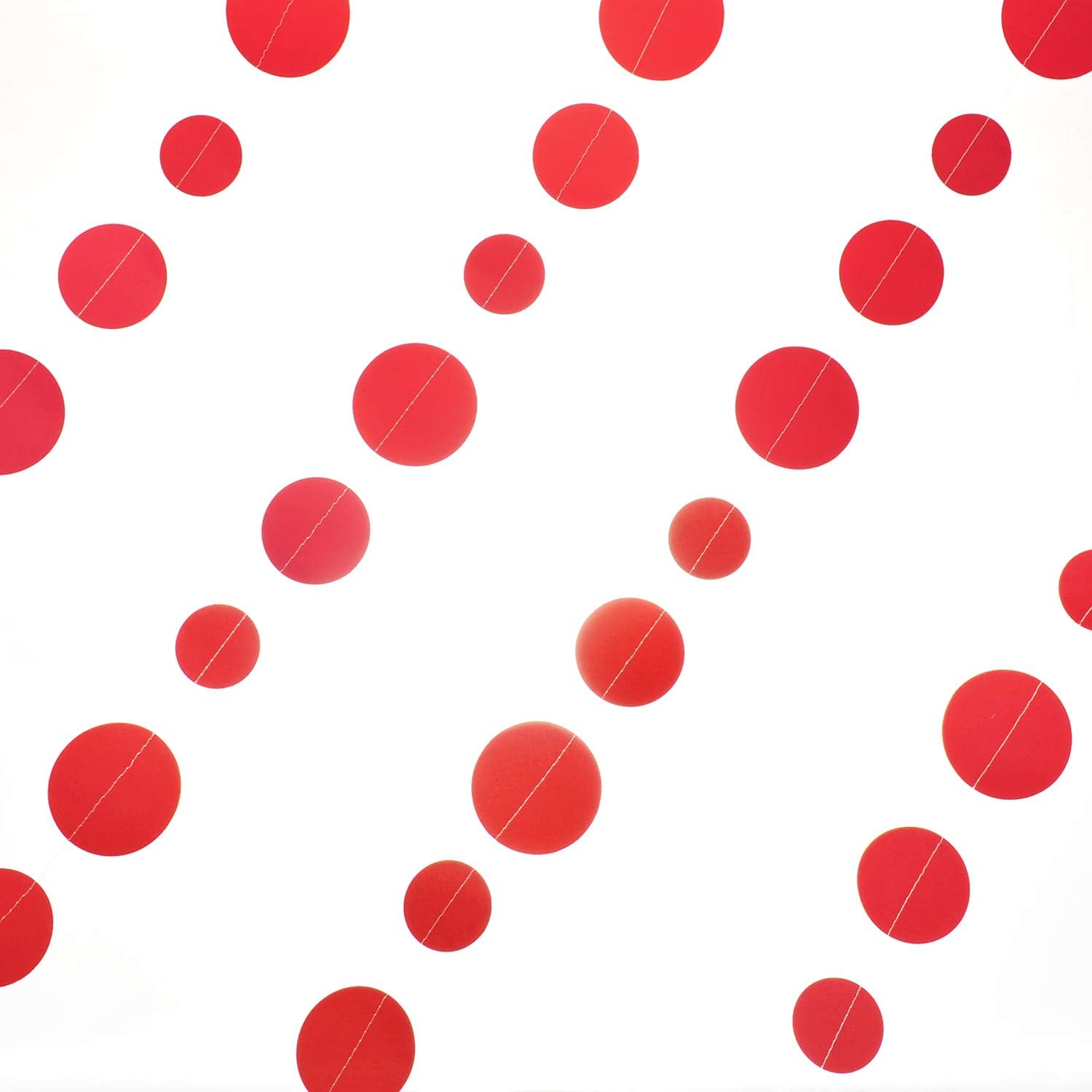 Red Paper Garland Circle Dot Party Banner Wall Streamers Backdrop Ceiling Hanging Decorations, 20 Feet in Total