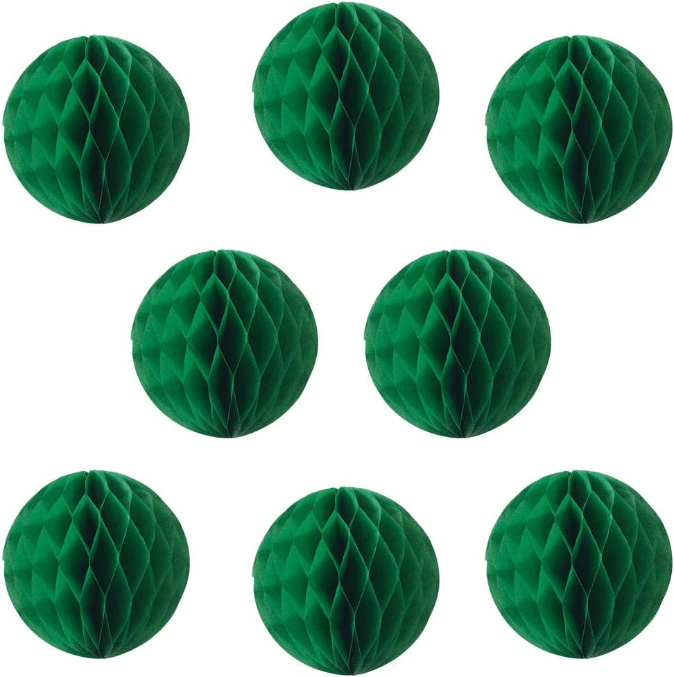 8pcs 10 inch Paper Honeycomb Balls Decorative Tissue Pom Poms Flower Art Hanging Balls for Birthday Wedding Nursery Baby Shower Home Decor (10inch, Dark Green)