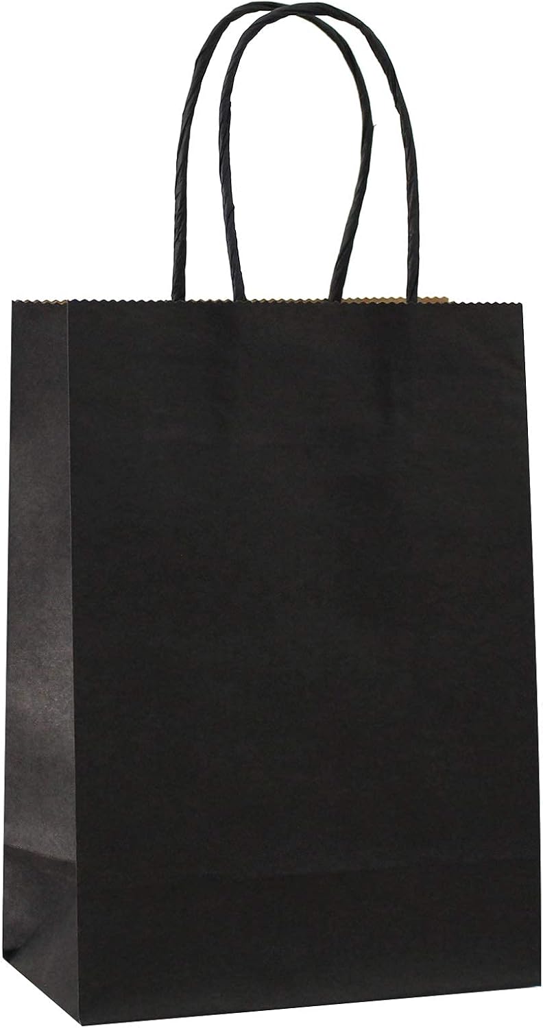 25 PCS Small Gift Bags Black Kraft Paper Bags with Handles for Party Favor (8.2 x 6 x 3.1 In)