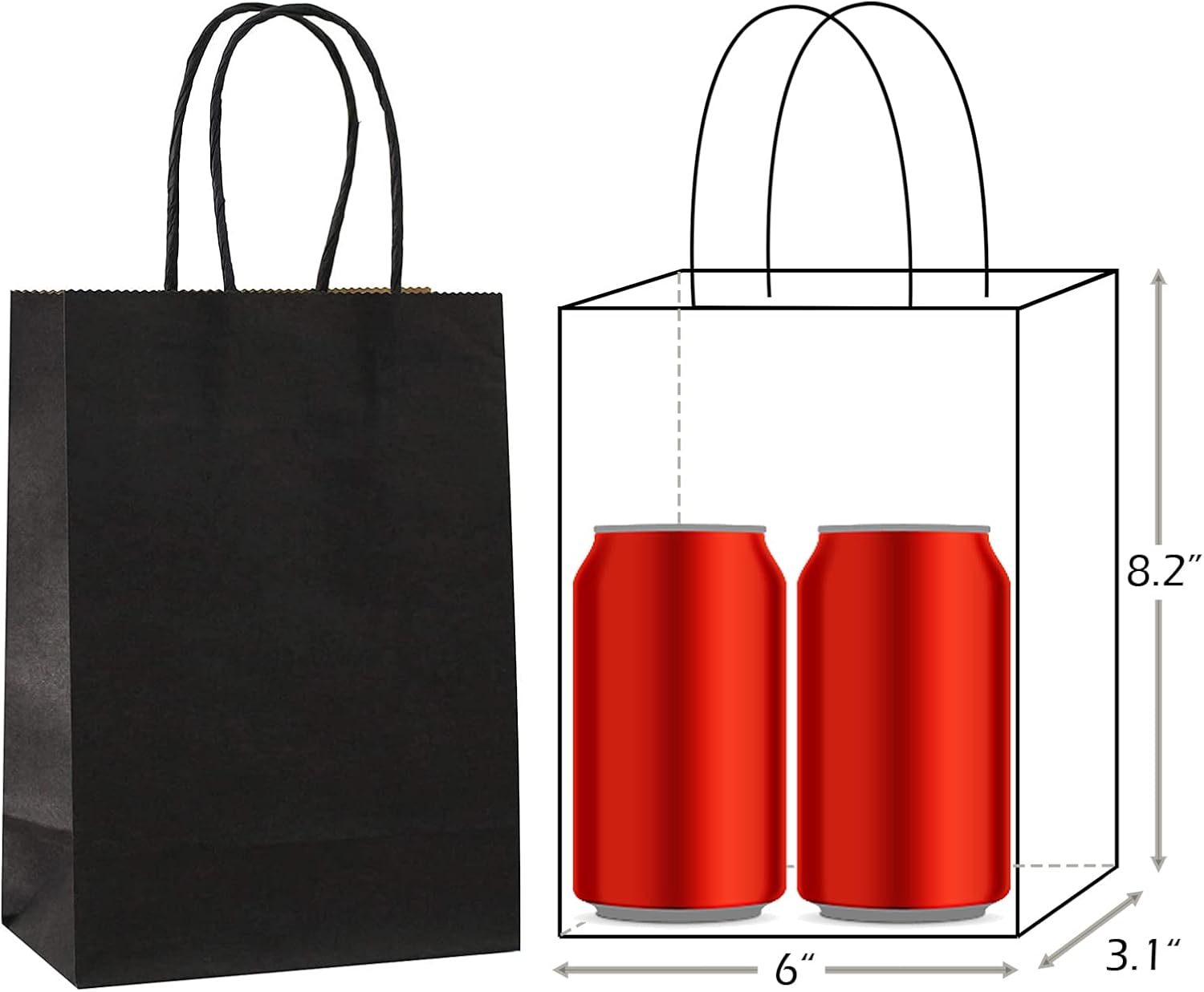 - Package: 25 PCS small black gift bags with handles, each bag measuring 8.2 x 6 x 3.1 inch