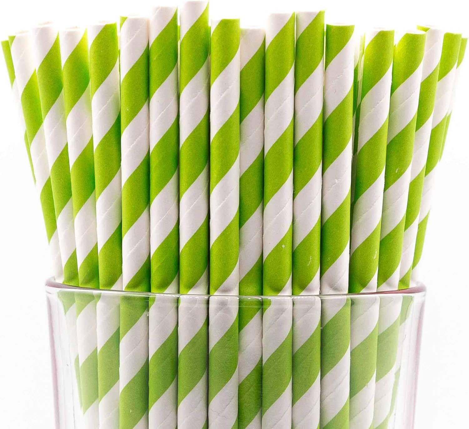 - Pack of 150 Green Swirls paper straws that are 7.75” long and have a diameter of 0.25”. Made with 4-ply paper which translates into thicker and more resilient straws that won’t wilt or change shape in both hot and cold drinks.