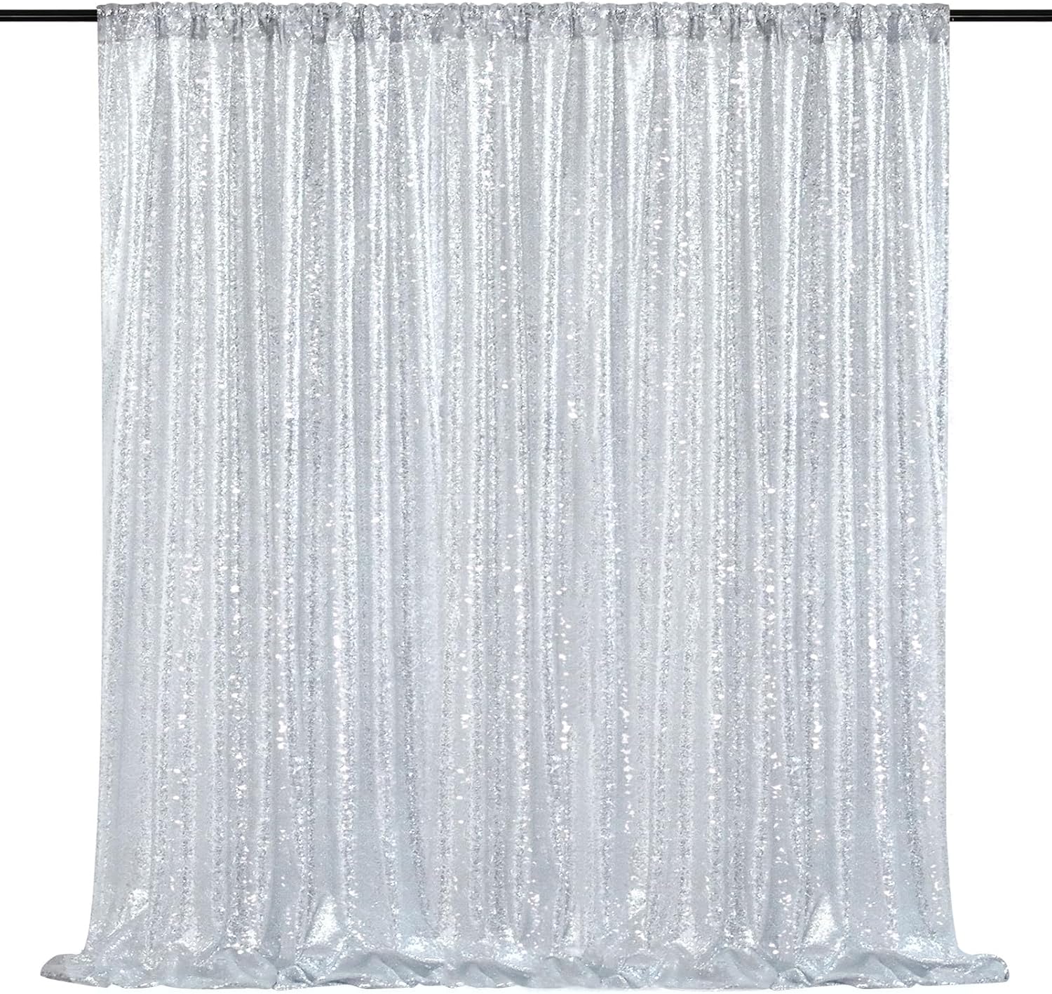 - Silver Backdrop Curtain: The total area covered by sequins backdrop is 8FT long x 8FT Width.With a 4-inch rod pocket on the top for easy hanging.