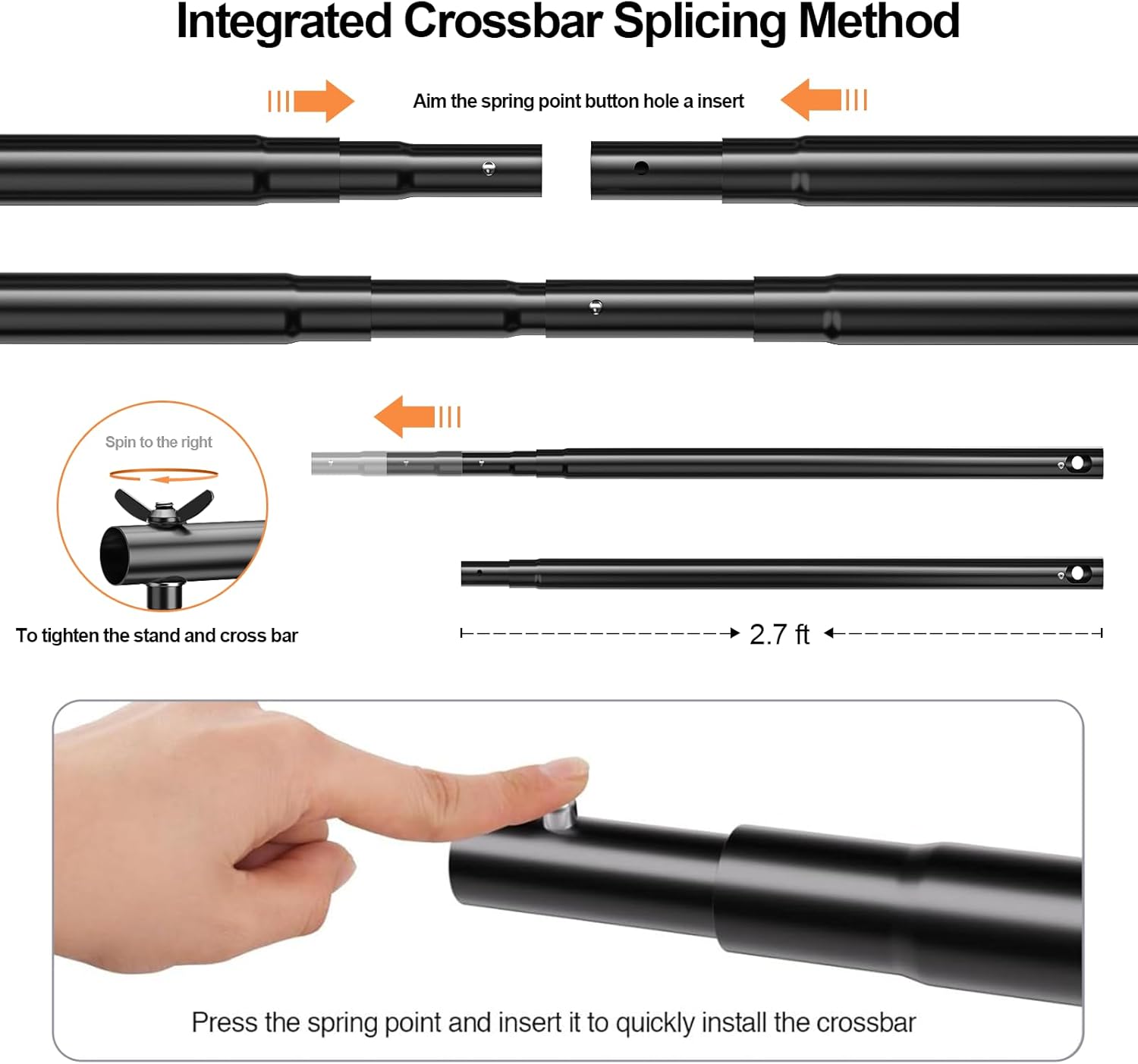 - 【Stable & Adjustable】Aluminum alloy structure brings stability and durability. Height-adjustable background support stand (from 3 ft to 8.5 ft) can be split and folded, and can be disassembled into two crossbars and two tripods. Integration Telescopic Cross Bar, width extendable from 5 ft to 10 ft. The joint comes with 1/4-inch screw tip, compatible with most type stand