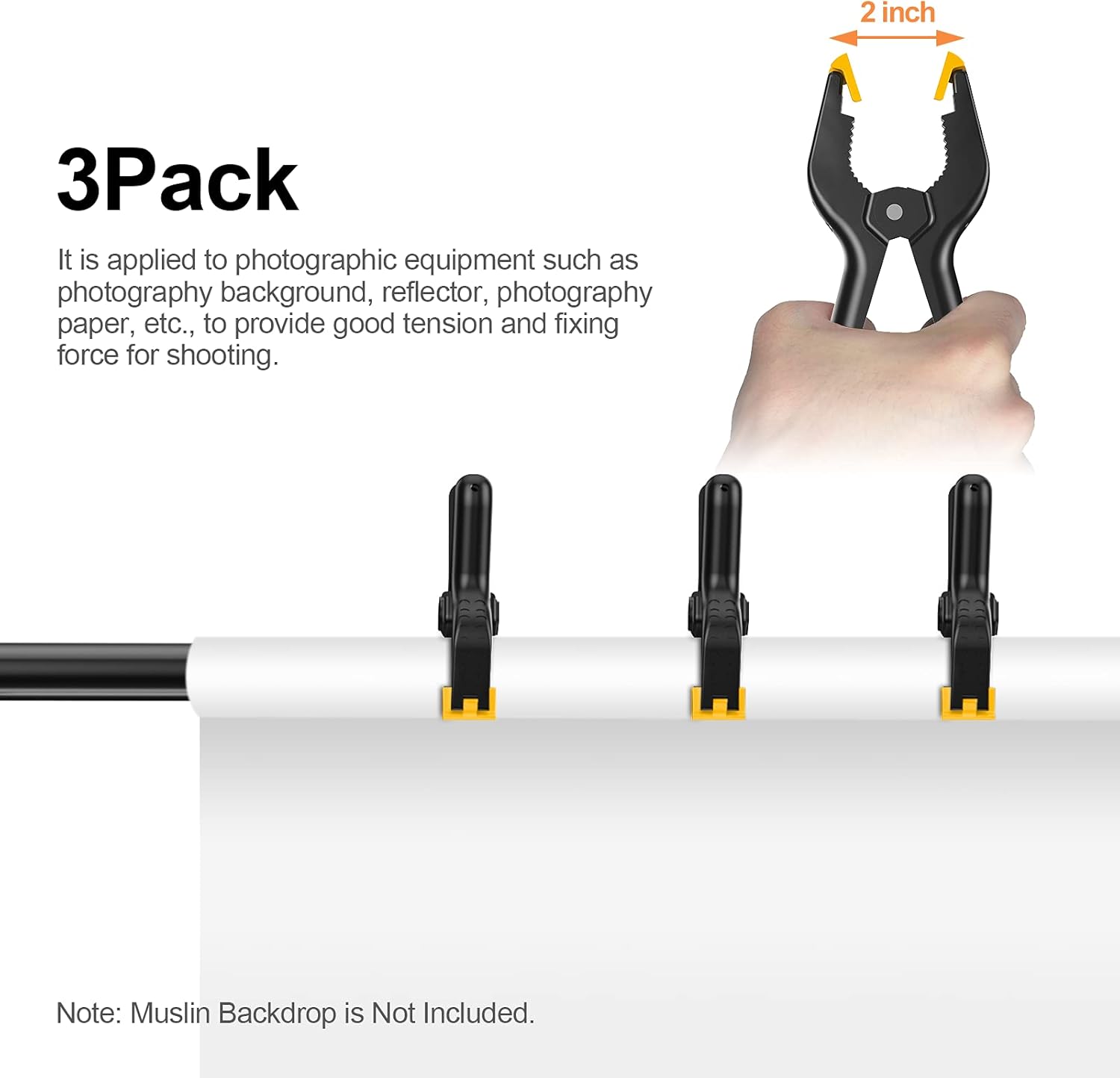 - 【Strong Clamps & Clips】Made of high-quality Nylon, can hold canvas, muslin or paper, avoid sliding when shooting. The Clamp is 4.5 inches long and helps user save effort. The String Clip can attach to light stands quickly and easily