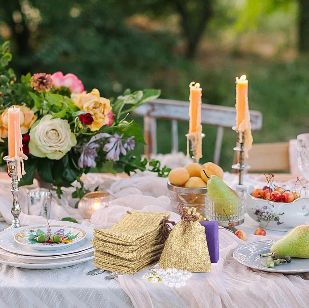 LYSXP 50PCS Burlap Bags with Drawstring,4x6 Inch Drawstring Gift Bag Jewelry Pouches for Wedding Party Favors, DIY Craft Christmas Presents