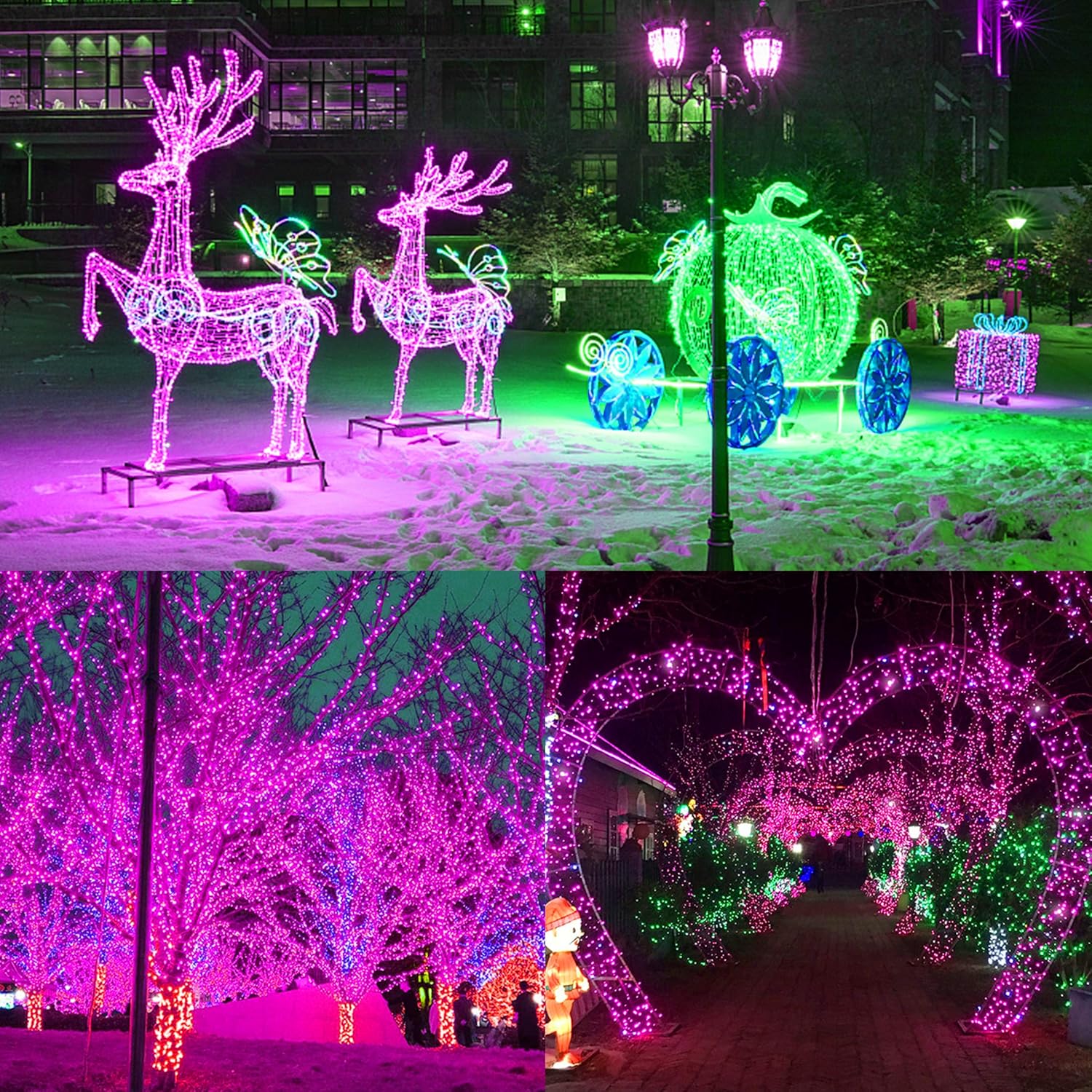 - 98.5ft Halloween Decorations string lights: With 300 Purple LED bulbs. Each black wire lights has end-to-end connection, you can connect up to 3 sets together to illuminate a wider range.