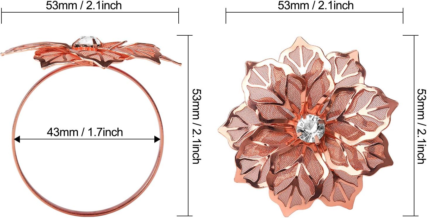 - Size of Flower Napkin Ring: The Gold Napkin Rings size is 1.7 inch in diameter and the flower is about 2.1 inches, suitable for most napkins.the faux rhinestones will shine brilliantly in the light, beautiful design brings elegance to your table, you will receive many compliments at the party.