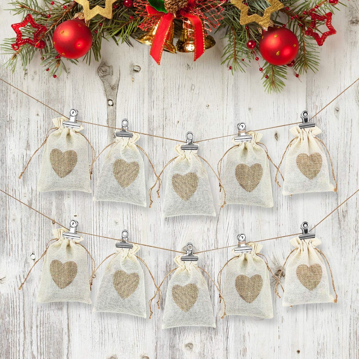 SumDirect Heart Burlap Bags with Drawstring - 36Pcs 4x6 Inch Beige Small Linen Gift Pouch for Wedding,Baby shower Favor Gift Bags