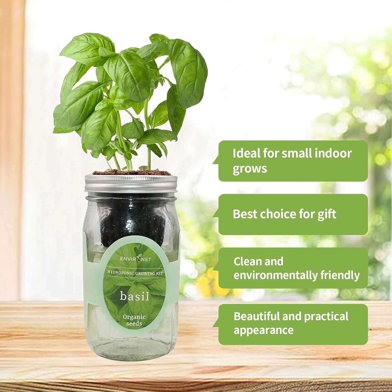 Hydroponic Growing Kit, Self-Watering Mason Jar Herb Garden Starter Kit Indoor, Windowsill Herb Garden, Grow Your Own Herbs from Organic Seeds (Basil)