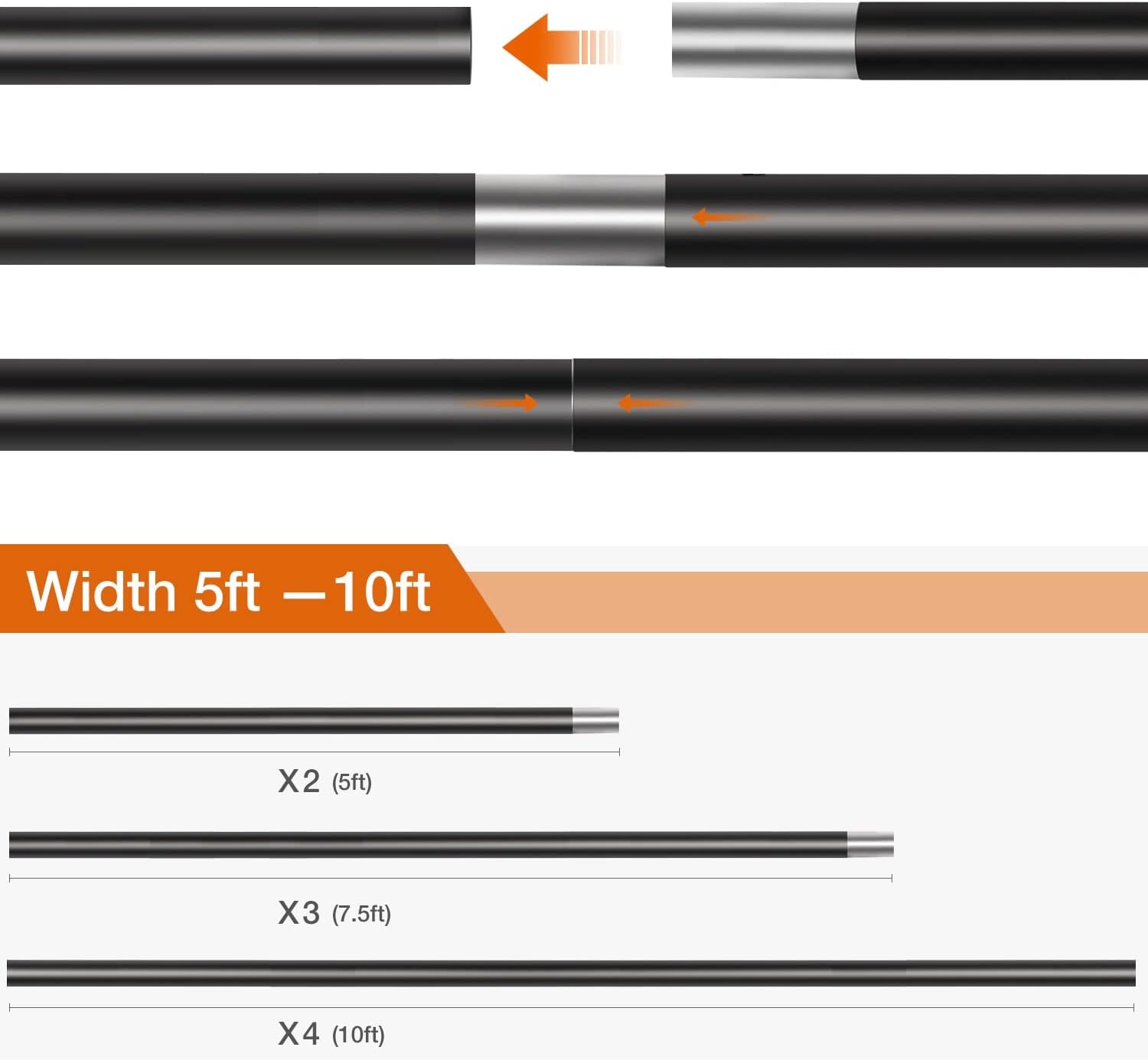 - 4 x CROSSBAR: Adjustable width (Min 5ft β Max 10ft), easy to connect, telescoping top crossbar, aluminum alloy support stand, professional lightweight pipes and support stands for professional photography, photo studio, family gathering, wedding, baby shower, party decoration, video shooting, live steaming like YouTube, TikTok, Facebook, Instagram, etc. Also this photo backdrop stand can be hung with green screen, canvas, muslin, cotton, paper and PVC background backdrop paper.