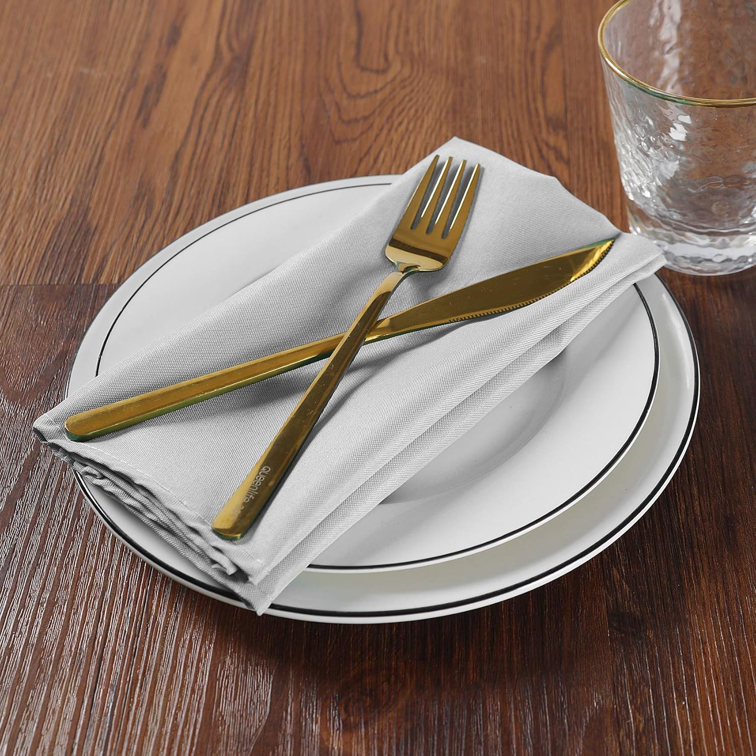 Cloth Napkins 20x20 inch Washable Polyester Dinner Napkins Soft Table Napkins for Wedding Party Dining Banquet(Silver,12PCS)