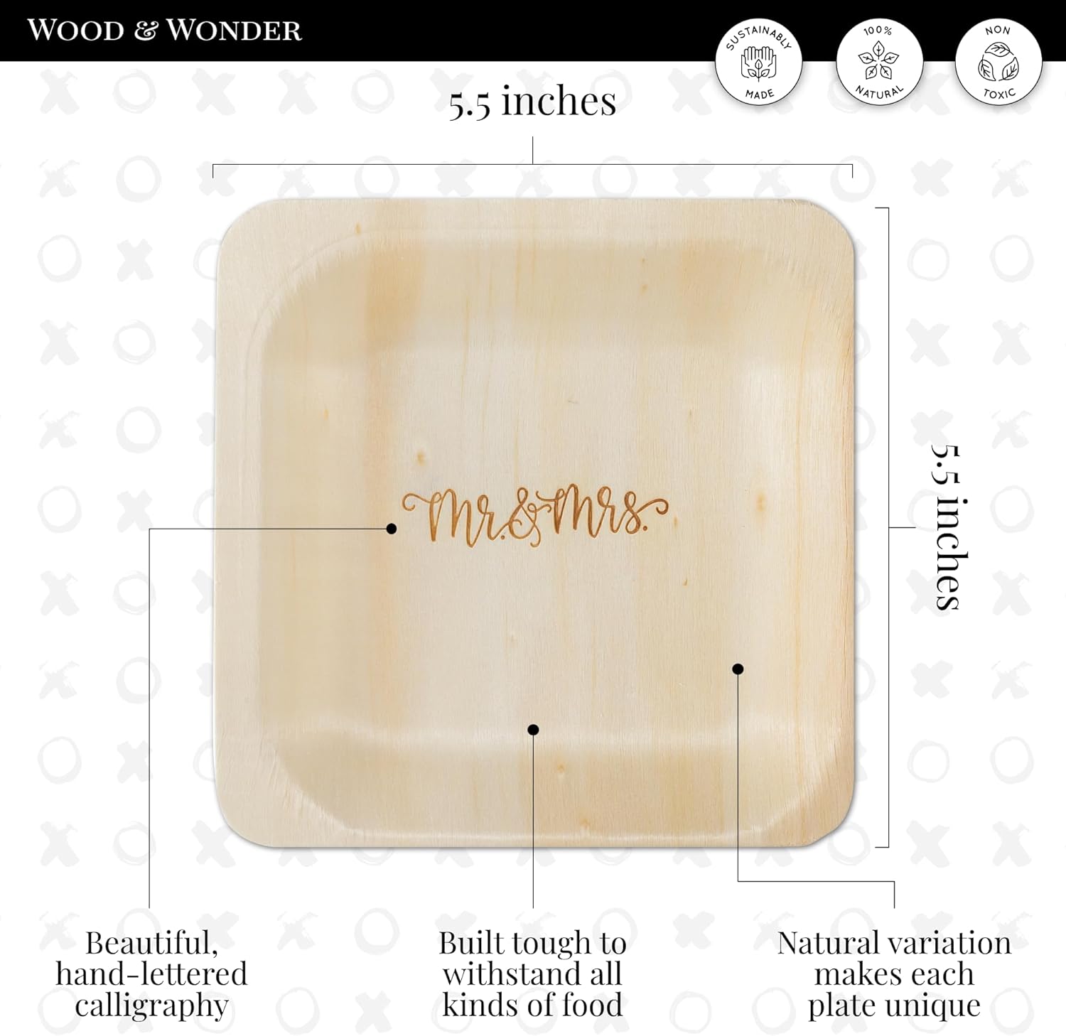 - π These naturally-finished disposable plates are made from responsibly-harvested wood, a much better alternative to single-use plastic plates or paper plates. Make an impact on your guests, without making one on the environment.