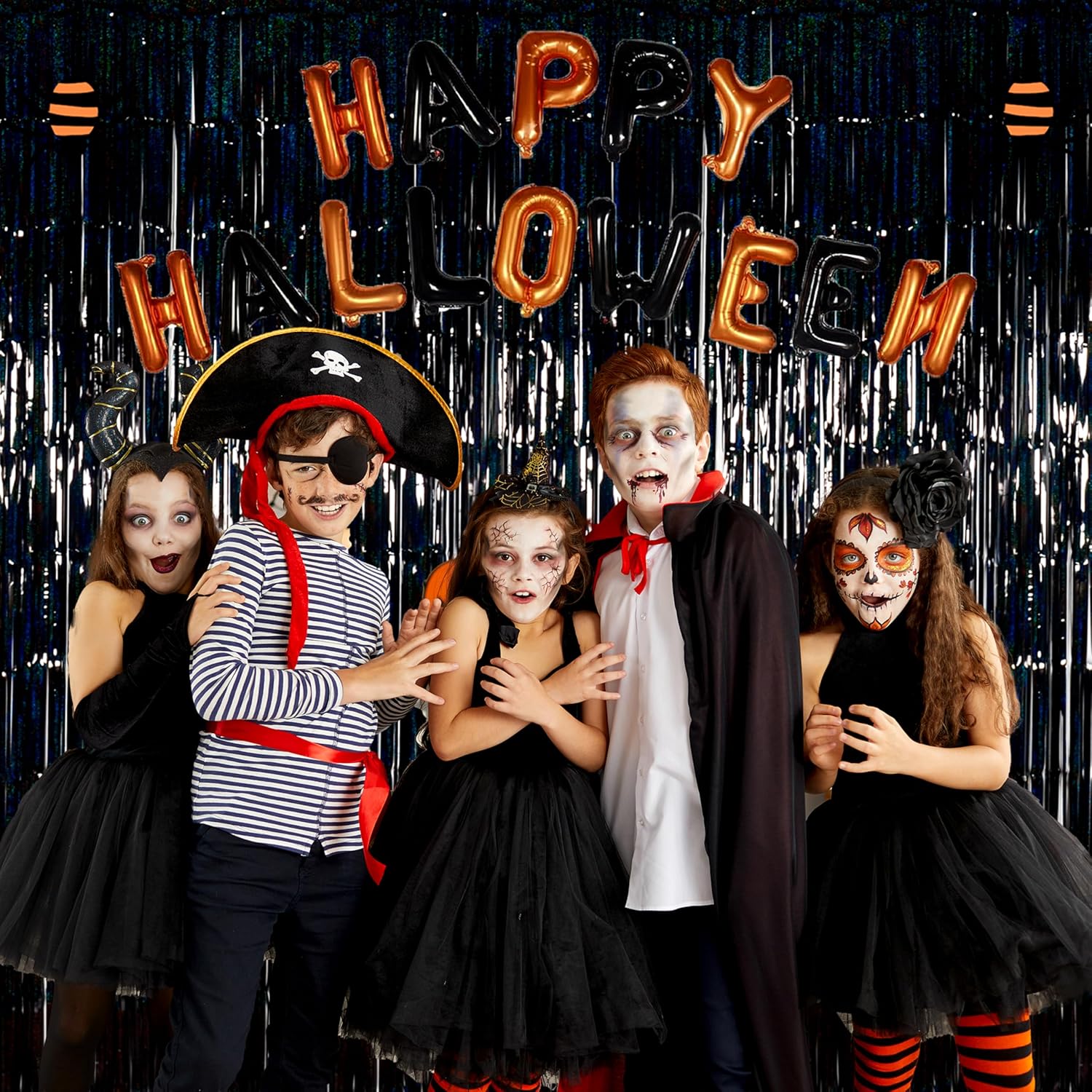 Foil Fringe Curtains Halloween Decor Indoor Party Decorations - Melsan 3 Pack 3.2 x 8.2 ft Black Tinsel Curtain Photo Backdrop for Birthday Decorations Retirement Party Decorations Black