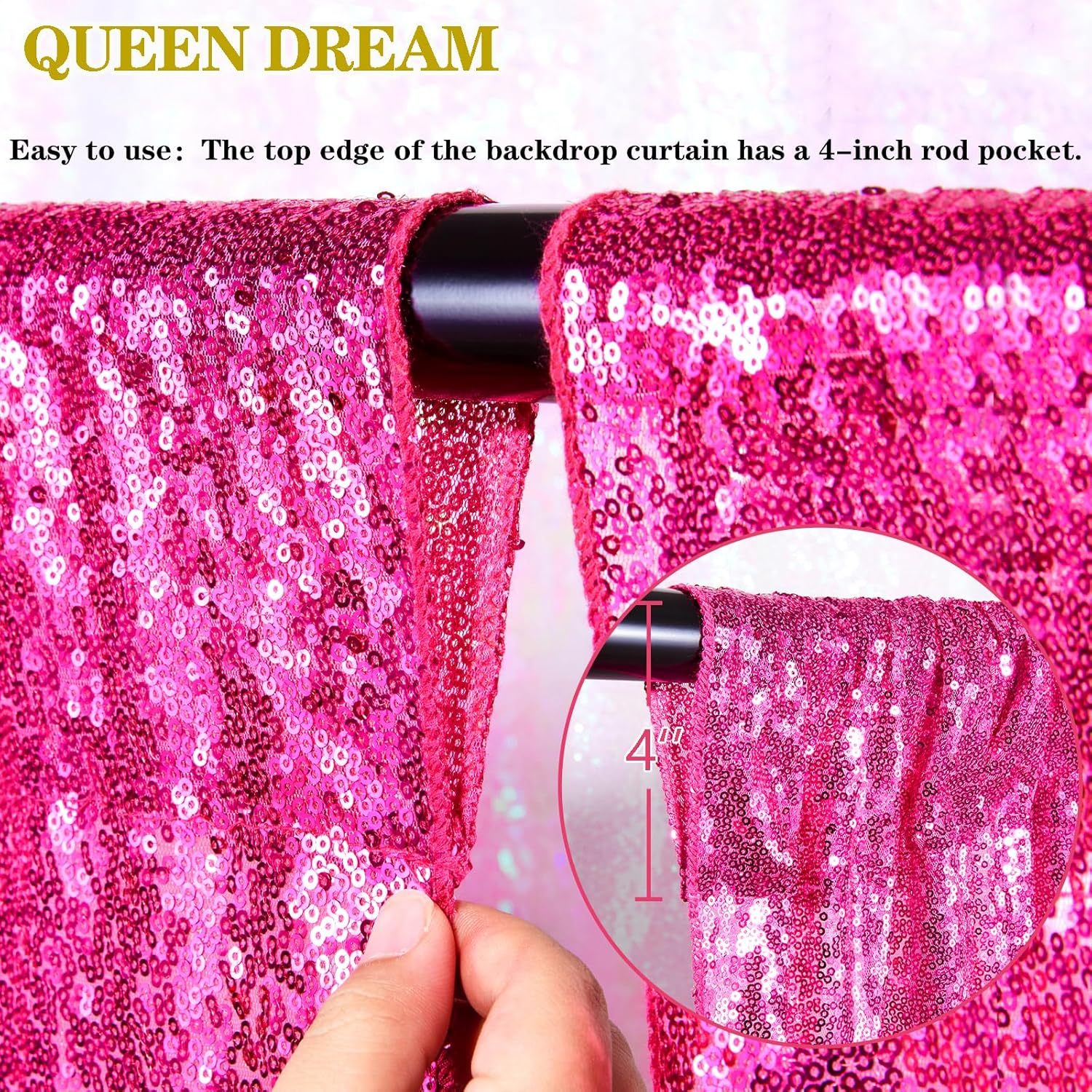 - High Quality Backgdrop: The sequin backdrops is made of 3MM round high density sequins material with mesh fabric backing. There is a 4-inch rod pocket on the top for easy hanging.