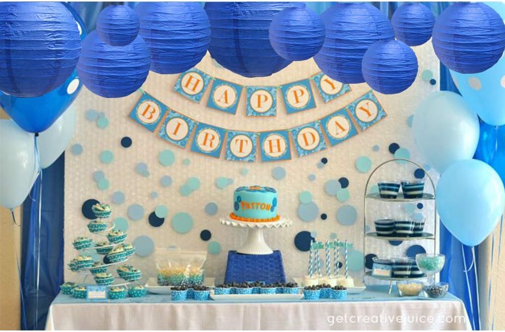 BEISHIDA Dark Blue Round Paper Lanterns Decorative Hanging Asia Chinese Japanese Paper Lanterns Lamp for Birthday Wedding Baby Bridal Shower Hannukah Home Decor Party Decoration(10 Packs)
