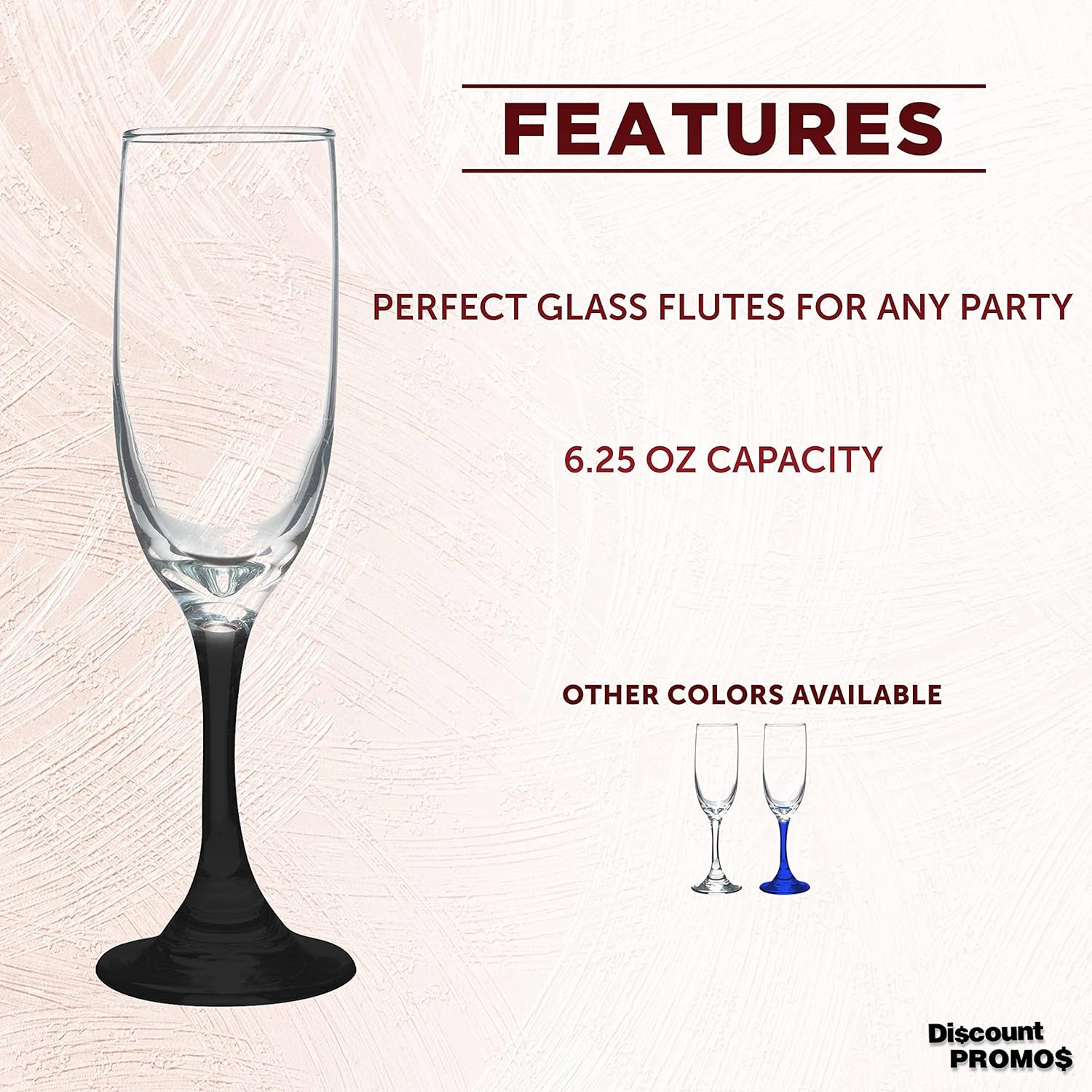 DISCOUNT PROMOS Premiere Champagne Flutes 6.25 oz. Set of 10, Bulk Pack - Elegant Drinkware for Weddings, Events, & Promotional Gifts - Black