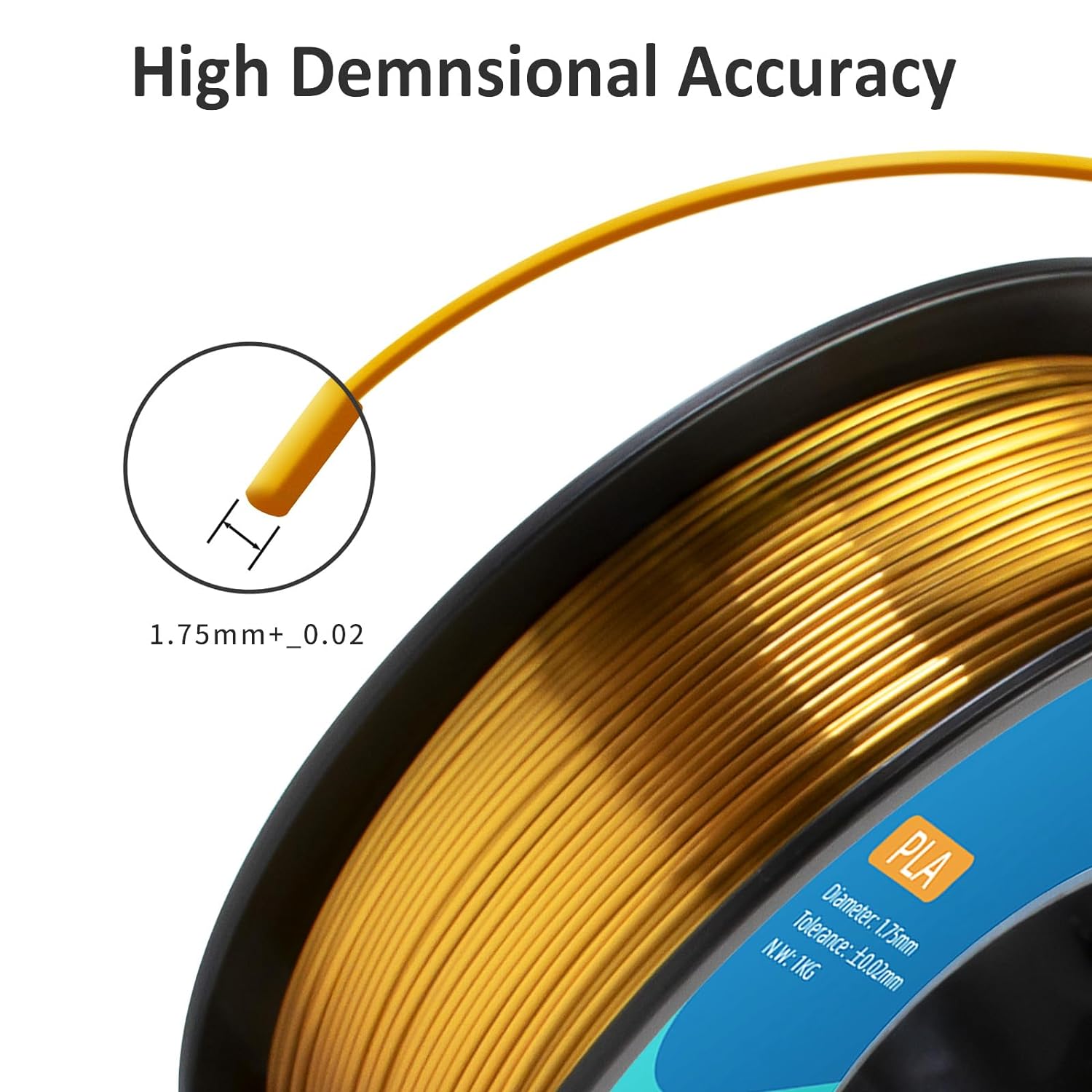 GIANTARM 3D Printer Filament, Silk Gold Pla Filament, 1Kg(2.2lbs) Spool, 1.75mm Dimension Accuracy +/- 0.03mm, 3D Printing Filament