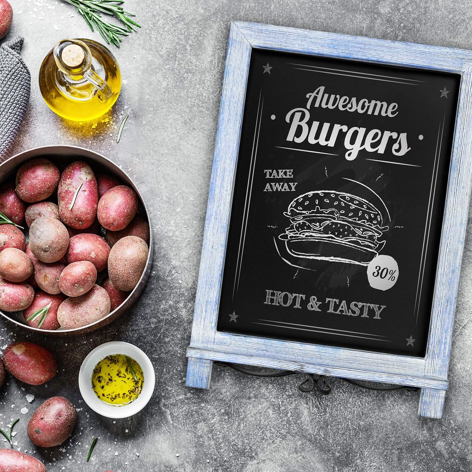 - VERSATILE DESIGN - Our small Chalkboard Easel was designed with maximum versatility. It can be used as a FREESTANDING chalkboard on tabletops or as a HANGING wall chalkboard. Our Patent Pending Design includes foldable metal legs and wall hanging hardware so its ready to use straight out of the box.