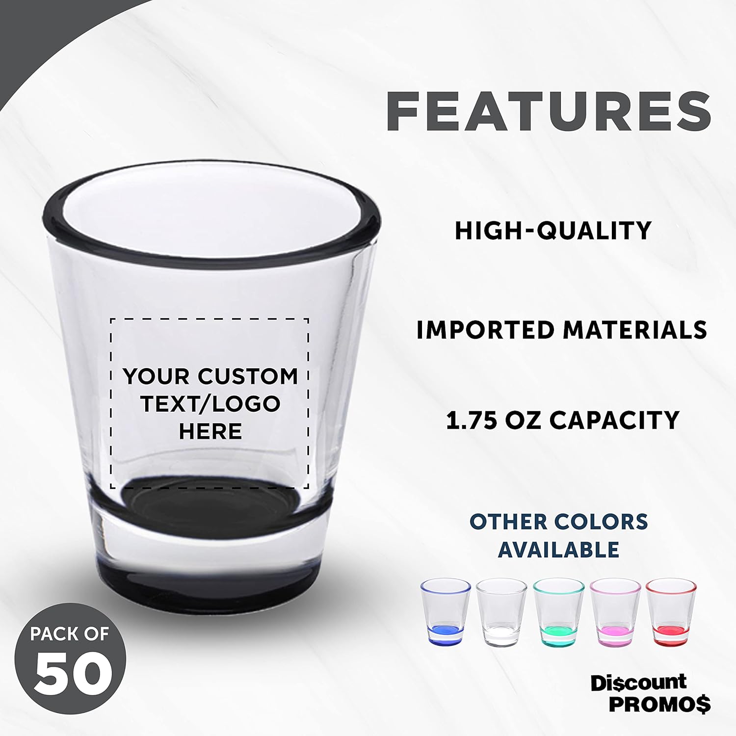Custom Shot Glasses 1.75 oz. Set of 50, Personalized Bulk Pack - Great for Wedding Favors, Bachelorette Party Decorations, Party Fovors, Color Bottom - Black