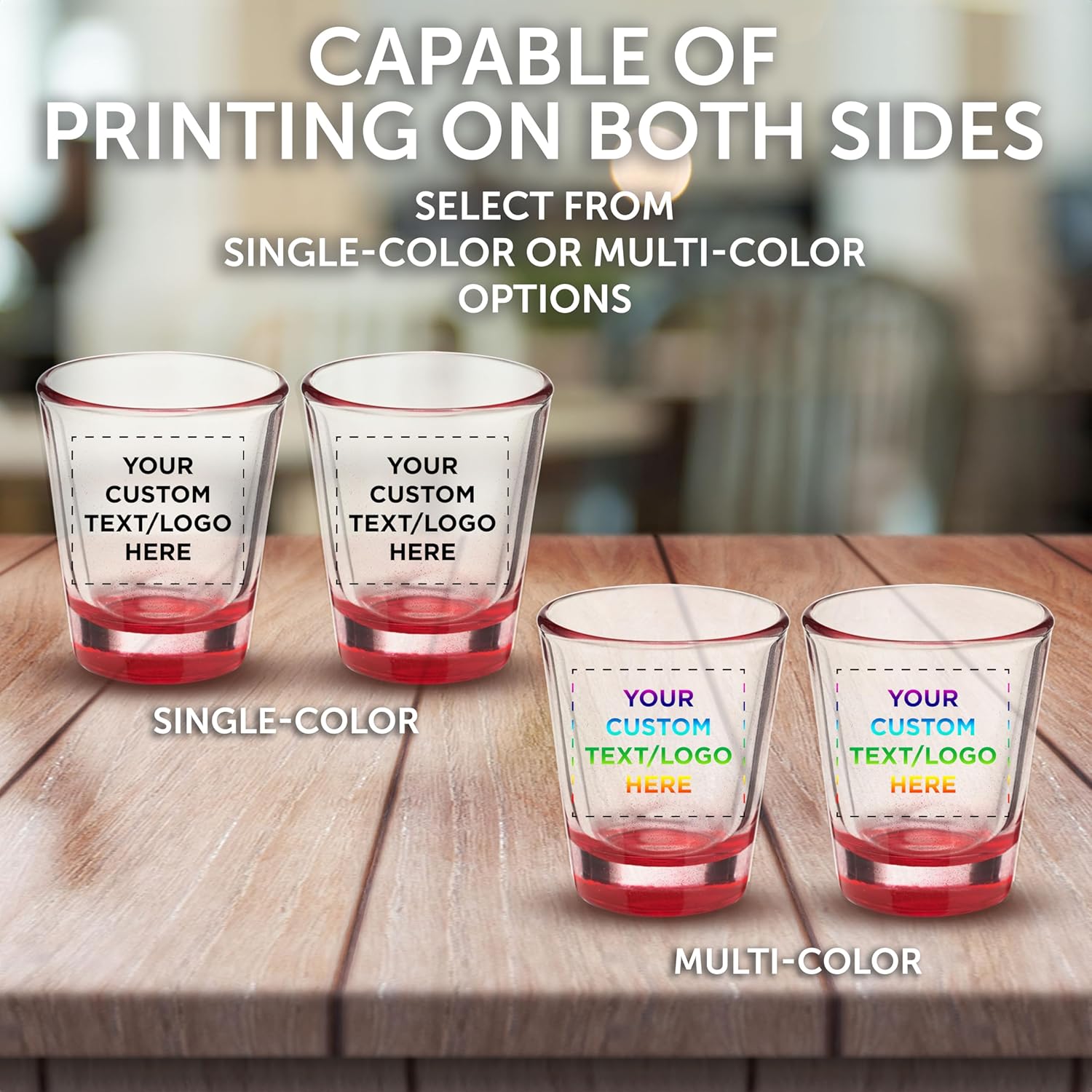 Custom Shot Glasses 1.75 oz. Set of 100, Personalized Bulk Pack - Great for Wedding Favors, Bachelorette Party Decorations, Party Fovors, Color Bottom - Red