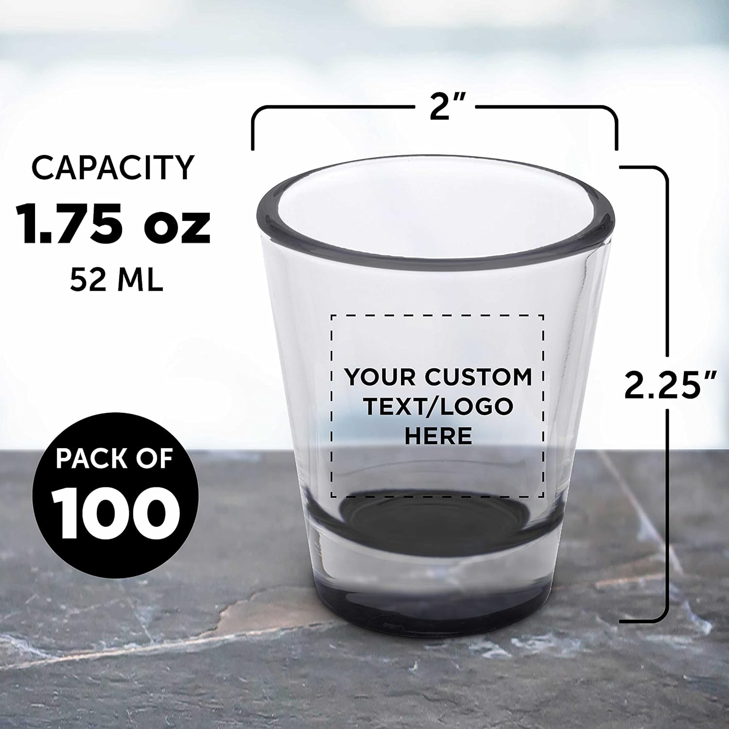 - CUSTOMIZABLE DESIGN - These classic shot glasses have a thick protruding base to add a small twist to the classic design. Add your text or logo and personalize these party glasses to fit your needs.