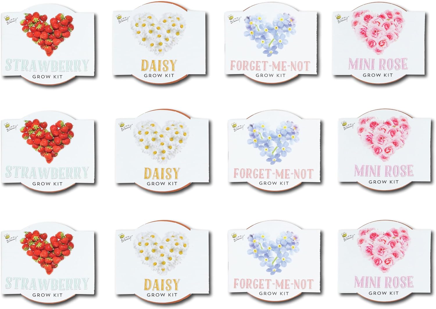 BUZZY Seeds Terracotta Mini Grow Pots Flower Plant Starter Kit – Love Collection Assorted 12-Pack – Indoor DIY Garden Kit – Perfect Wedding Favors, Bridal Shower Gifts & Gardening Gifts