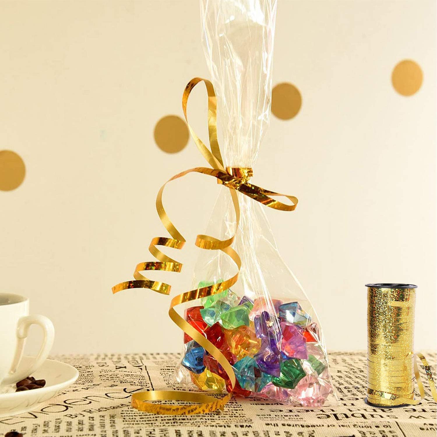 - Curling Ribbon for Gift Wrapping : Each metallic curling ribbon measures 100 yard long and 5mm wide, easy to cut into any length as desired. These gift wrap ribbon are all wrapped around a plastic spool to prevent getting twined or being in stuck