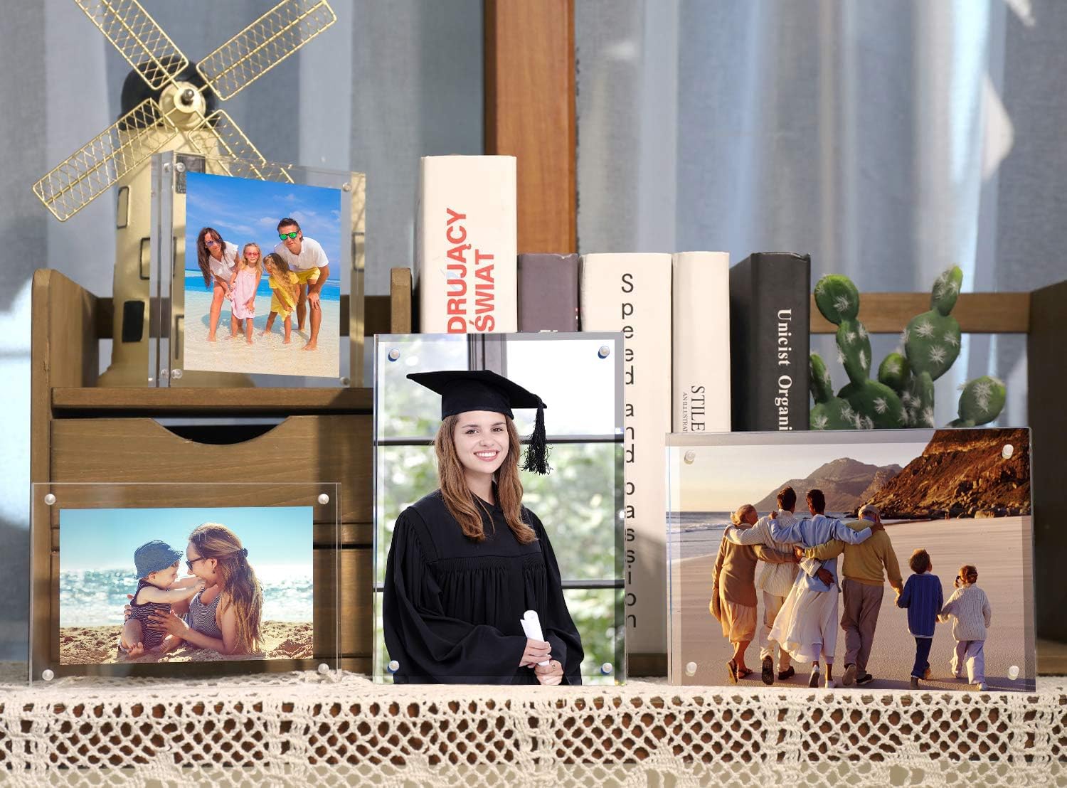 HELPLEX 6 Pack Acrylic Frame, 5x7&4x6 Combinations, 20% Thicker, 20-24mm Thick Acrylic Picture Frames, Frameless Clear Double Sided Magnetic Frame, Free Standing Desktop Display Stand Acrylic Frames