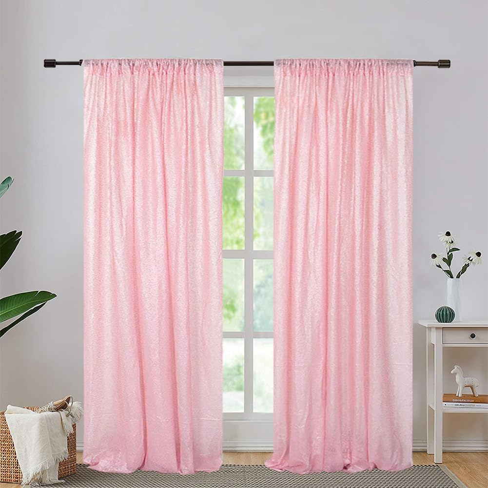 Eternal Beauty Pink Sequin Backdrop Curtains, Valentine's Day Shimmer Back Drop 2Panels-2FTx8FT for Christmas, Party, Birthday, Photography, Wedding, Baby Shower Event Decoration