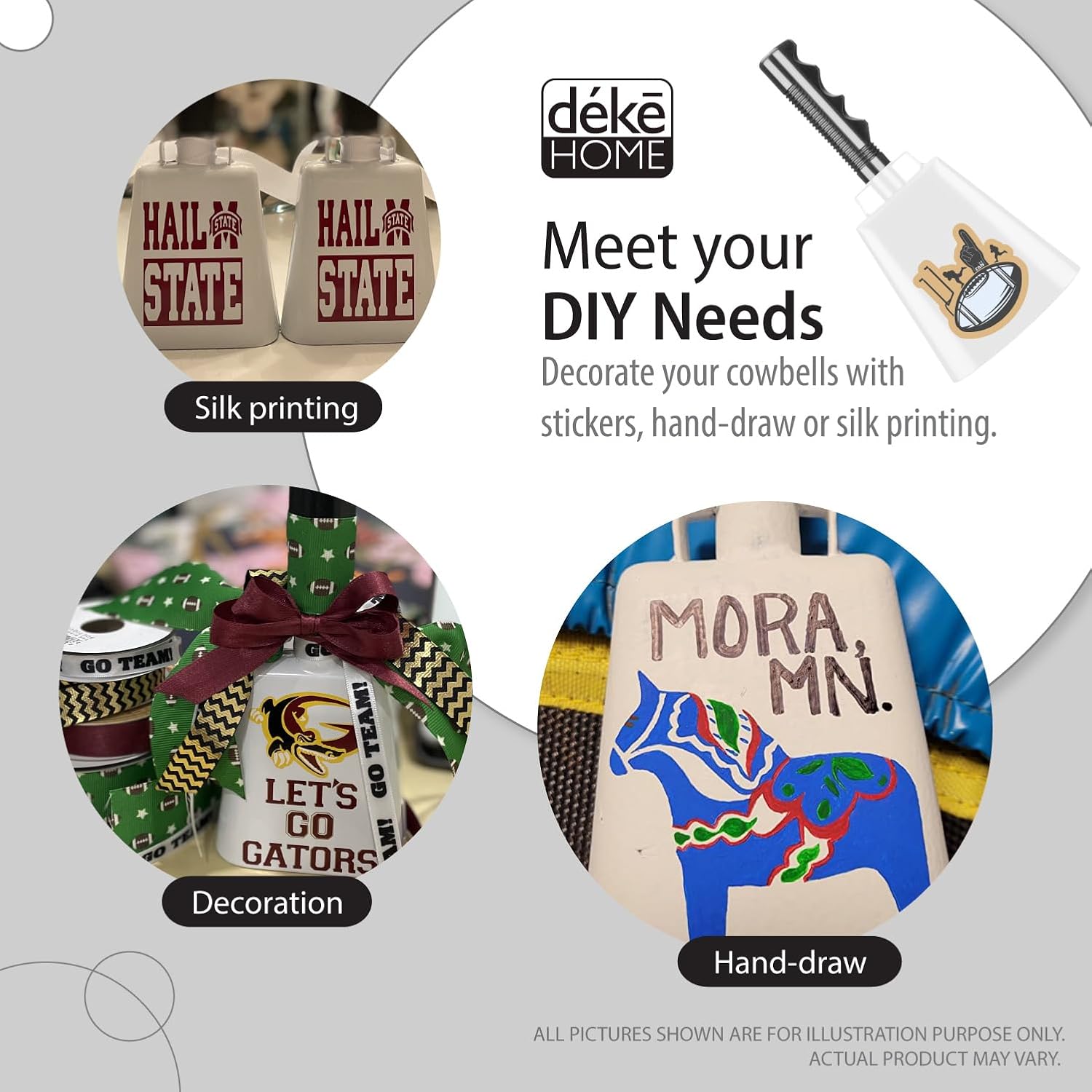 Deke Home - 2 Pack 10 Inch Steel Cowbells with Handle, Loud Noise Makers for Football, Sports, Parties, Competitions, School Spirit & Safety, Large Hand Bell for Cheering & Percussion Instrument