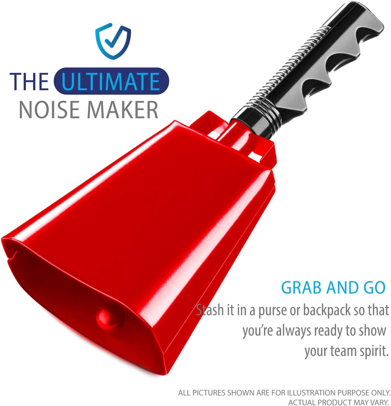 - π Loud & Durable Steel Cowbells : Made from high-quality alloy steel, these 10-inch cow bells produce a clear, powerful sound perfect for cheering at sports games, football, and soccer events.
