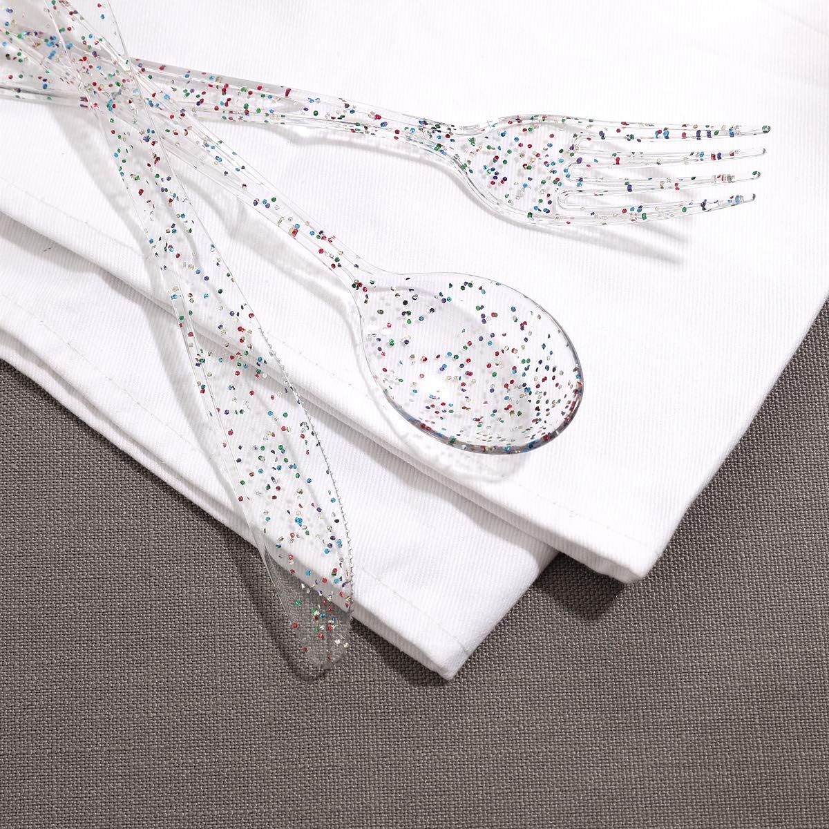 Supernal 360pcs Clear Plastic Silverware, Glitter Disposable Cutlery with Colorful Design,120 Forks,120 Knives,120 Spoons,Perfect for Parties Birthday