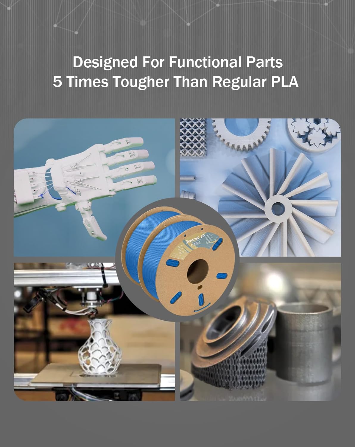 - 【Higher Impact Strength & Toughness】 PLA Plus known as the flagship product of Duramic 3D, PLA Plus filaments (PLA+) 1.75mm are made of USA high-purity raw material from Natureworks. Duramic 3D PLA Pro filaments feature 5 times impact strength , which is perfect for printing functional models with higher toughness need.