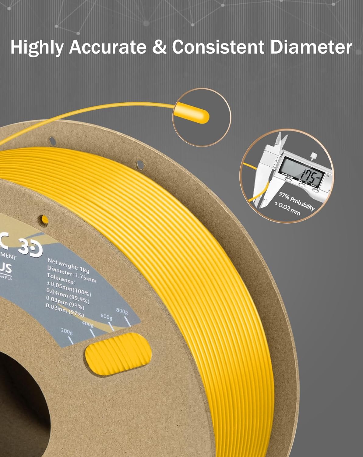 DURAMIC 3D PLA+ Filament 1.75mm 1Kg Yellow, PLA Plus Filament 1Kg Spool(2.2lbs) Tougher and Stronger, Dimensional Accuracy Probability +/- 0.02mm