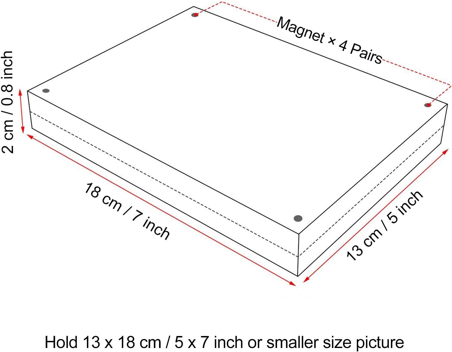 - [STURDY & SOLID] - Two acrylic photo blocks and four solid embedded corner magnets secure the two photos together. The magnets are strong enough to hold various pictures such as postcards, currency, tickets. Record and show your memorable moment on this acrylic frame forever.