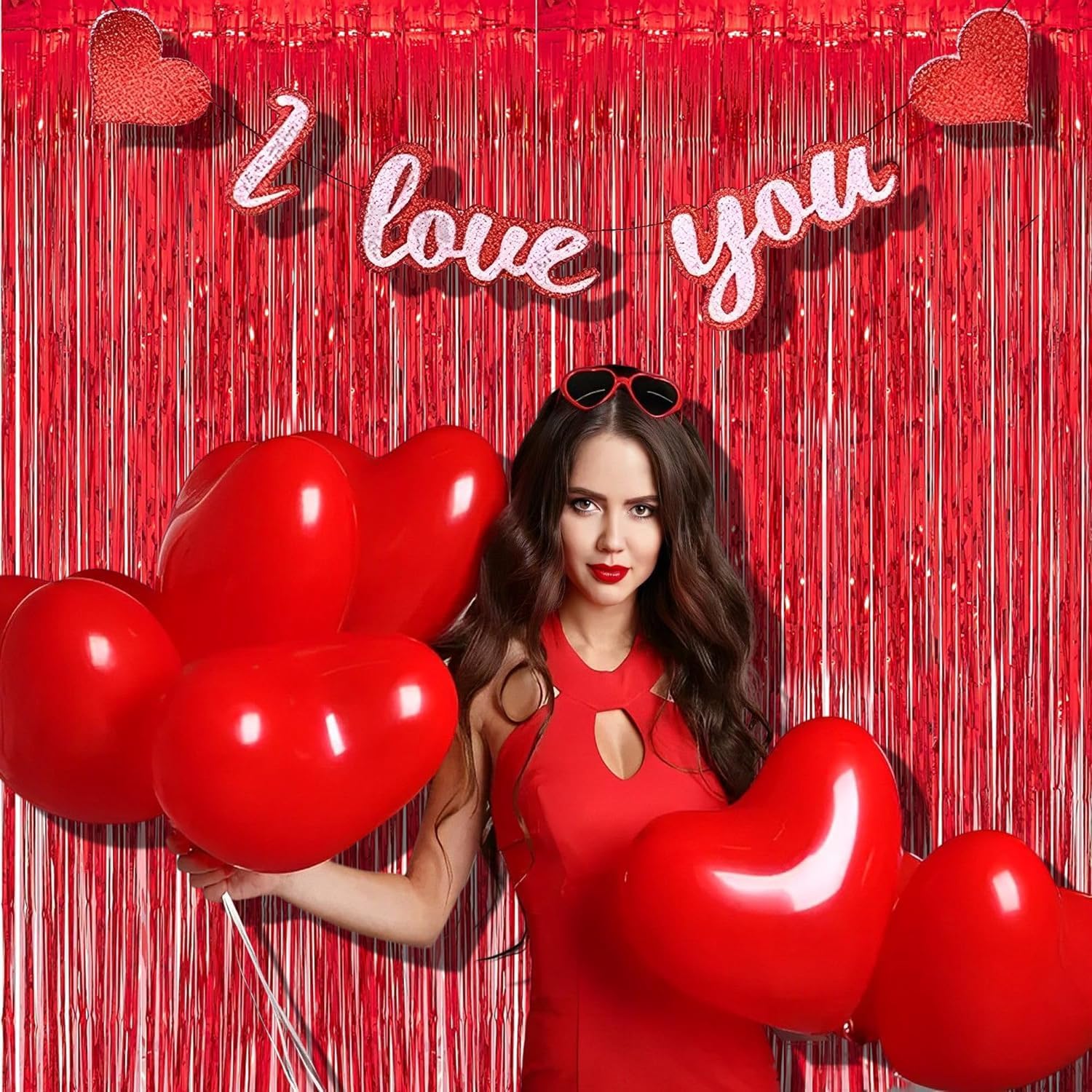 - 3.2 ft x 8.2 ft Metallic Tinsel Curtain. They are enough long and it cover just right for different events. Also enable to paired with LED light curtains, valentines day balloons, banners, hanging swirls, valentine photo booth props, valentines tree, valentines table centerpiece, valentine ribbon, valentines day confettis, paper fans, pom pom flowers, valentines wreath, rose petals and heart garland decorations. It would make your party more impressive and compliments!