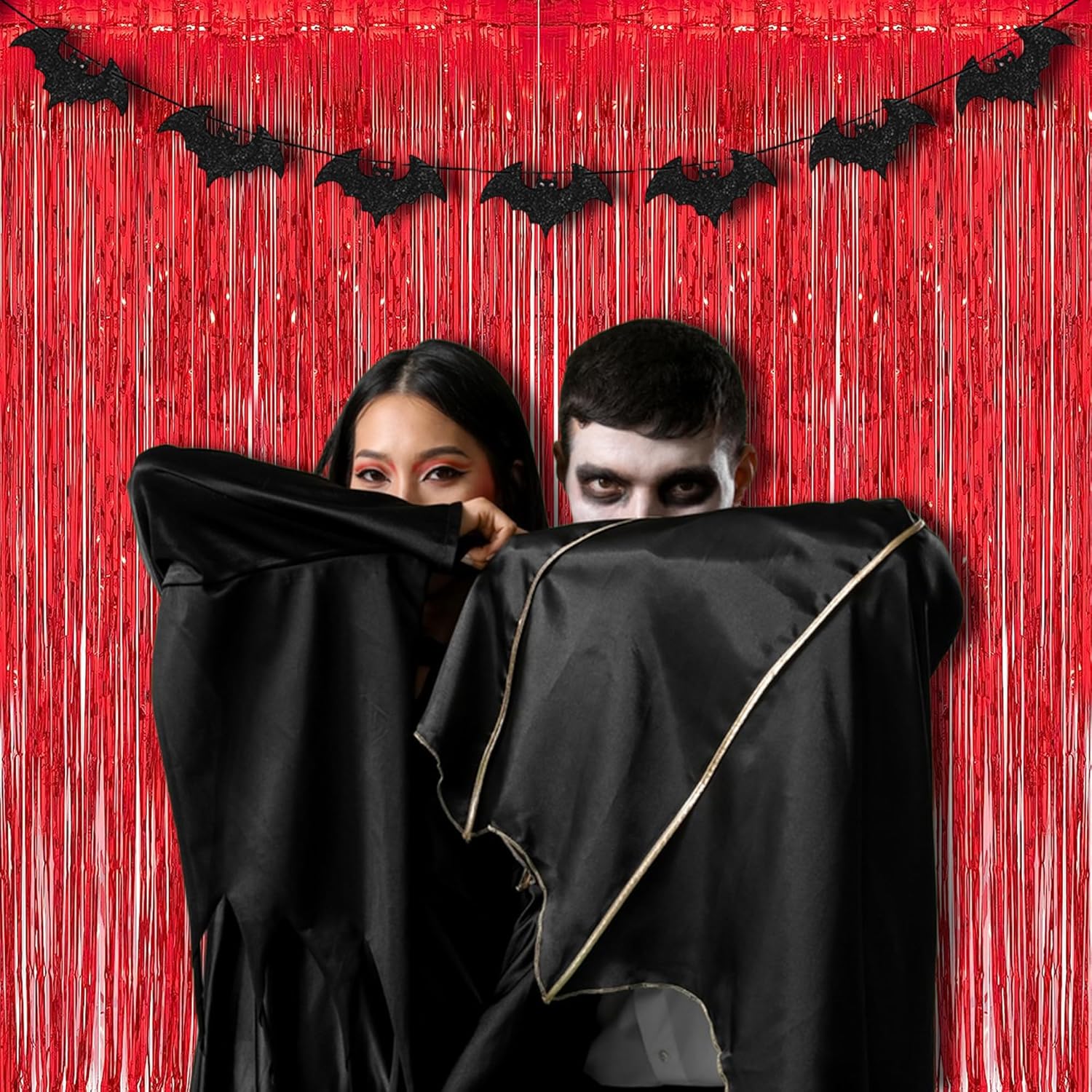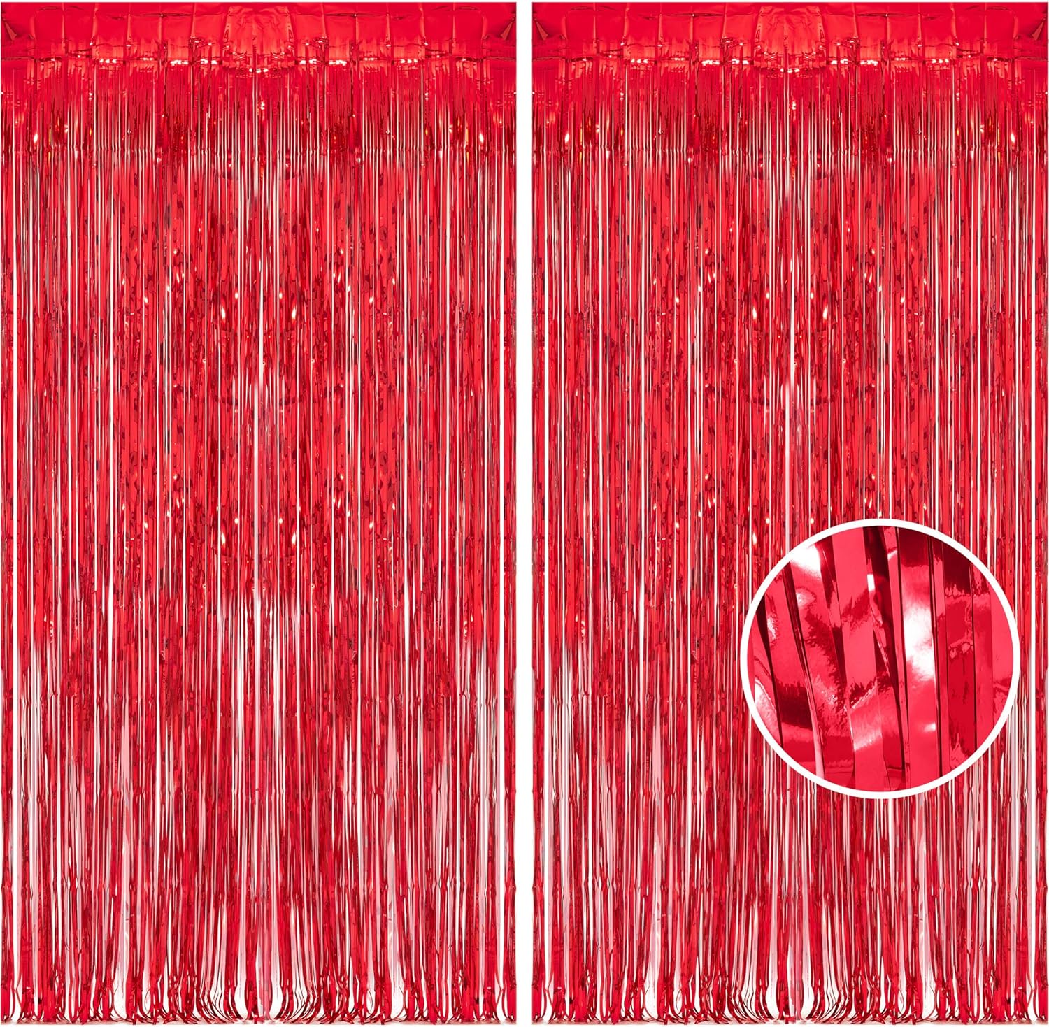 Foil Fringe Curtain Christmas Party Decorations - Red Metallic Tinsel Photo Booth Backdrop Party Steamers Curtains for Christmas New Years Valentines Engagement Celebration Party