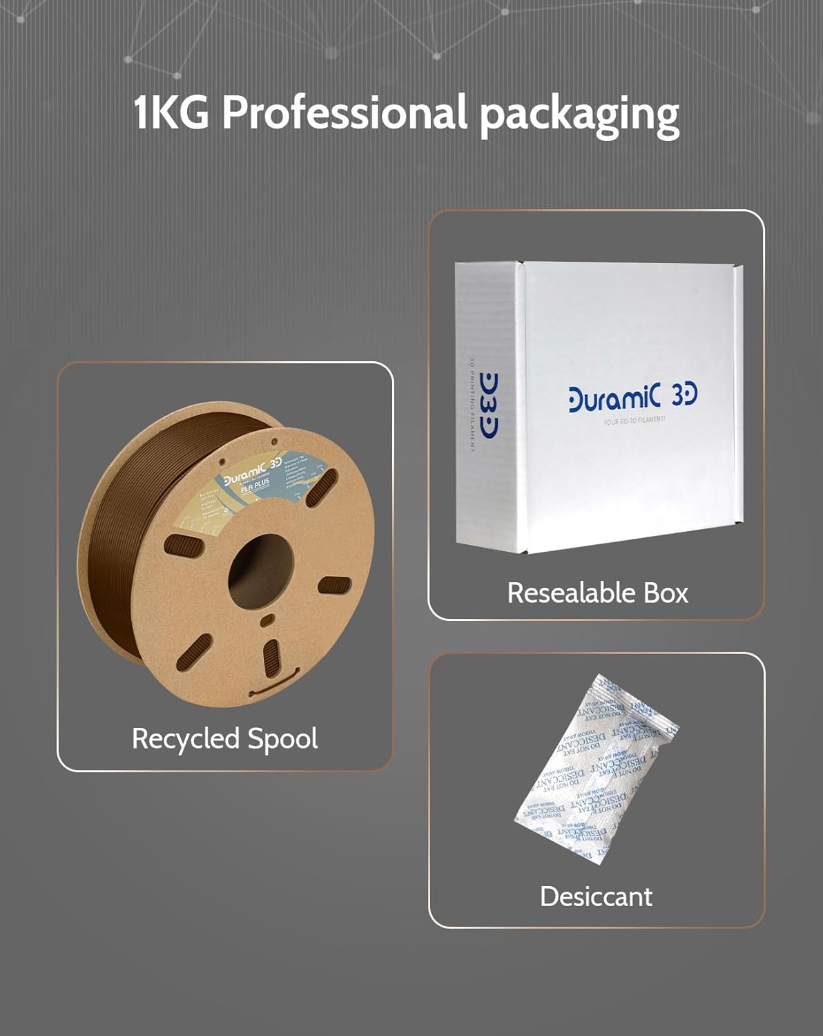 - 【Jam-free& Smooth Printing】Duramic 3D PLA plus filament features unique patented Jam-free technology and 100% vacuumed package in resealable with desiccant, which makes no room for clogging and bubbling.