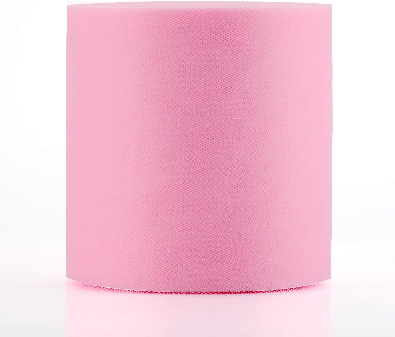 Tulle Fabric Roll, 6” by 200 Yards (600FT) Tulle Organza Fabric Spool for DIY Tutu Skirt Baby Shower Decor Wedding Backdrop Crafts Birthday Party Supplies (Pink)